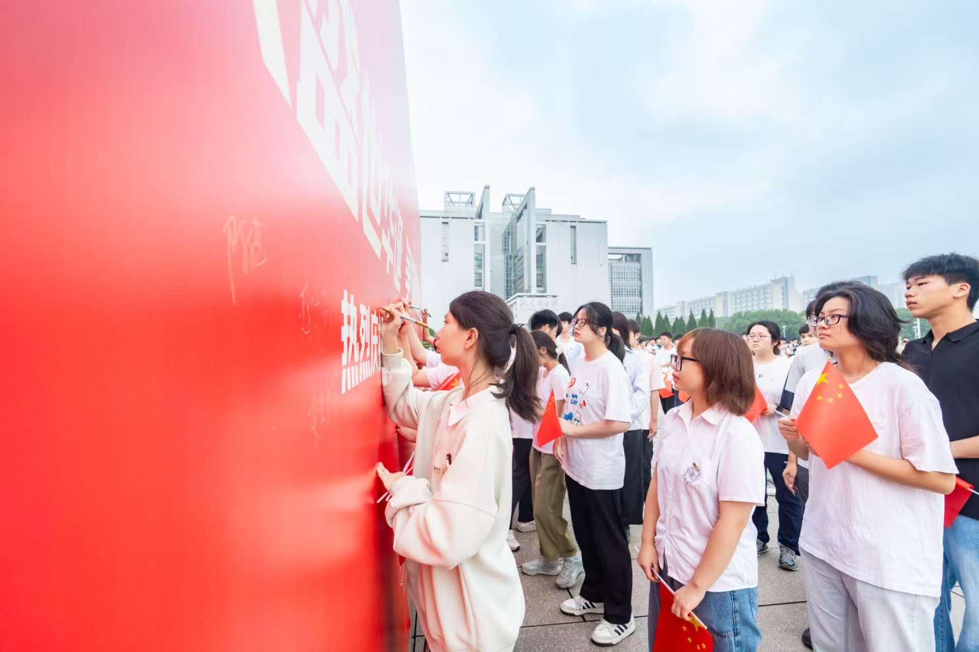 现场师生齐声合唱《我和我的祖国》。升旗仪式结束后,师生们热情参与到“青春誓言献祖国”“我和国旗合张影”活动中来,用笔端书写炽热的爱国心声,用镜头记录下一段段真挚心声、一个个动人画面,凝聚成对祖国华诞最诚挚的祝福,将爱国情怀融入一言一行。