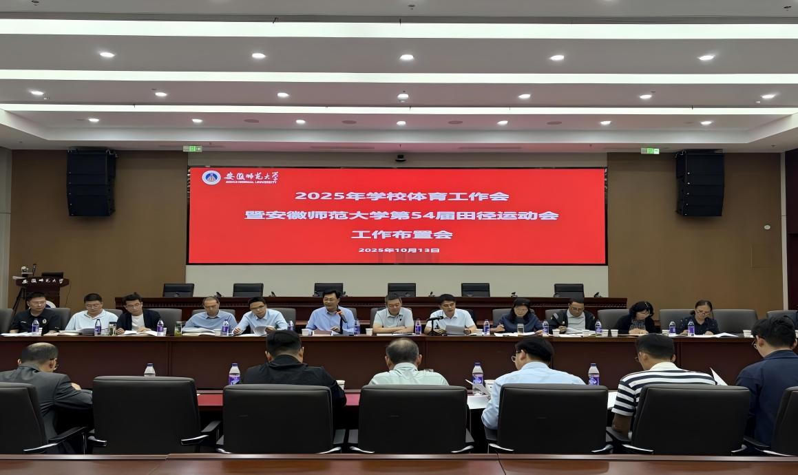 会上,校学生体质健康测试管理中心主任李晗领学了《安徽师范大学学生体质健康测试管理办法》,并就各学院2024年体质健康测试成绩作了通报。校体委办公室主任、体育学院副院长余涛对一年来学校体育工作进行了总结,并介绍了第54届田径运动会的前期筹备情况。校体委常务副主任、体育学院院长金涛就第54届田径运动会的各项工作作出具体部署。校工会主席李娟对本届运动会教工比赛项目进行了说明和解读。