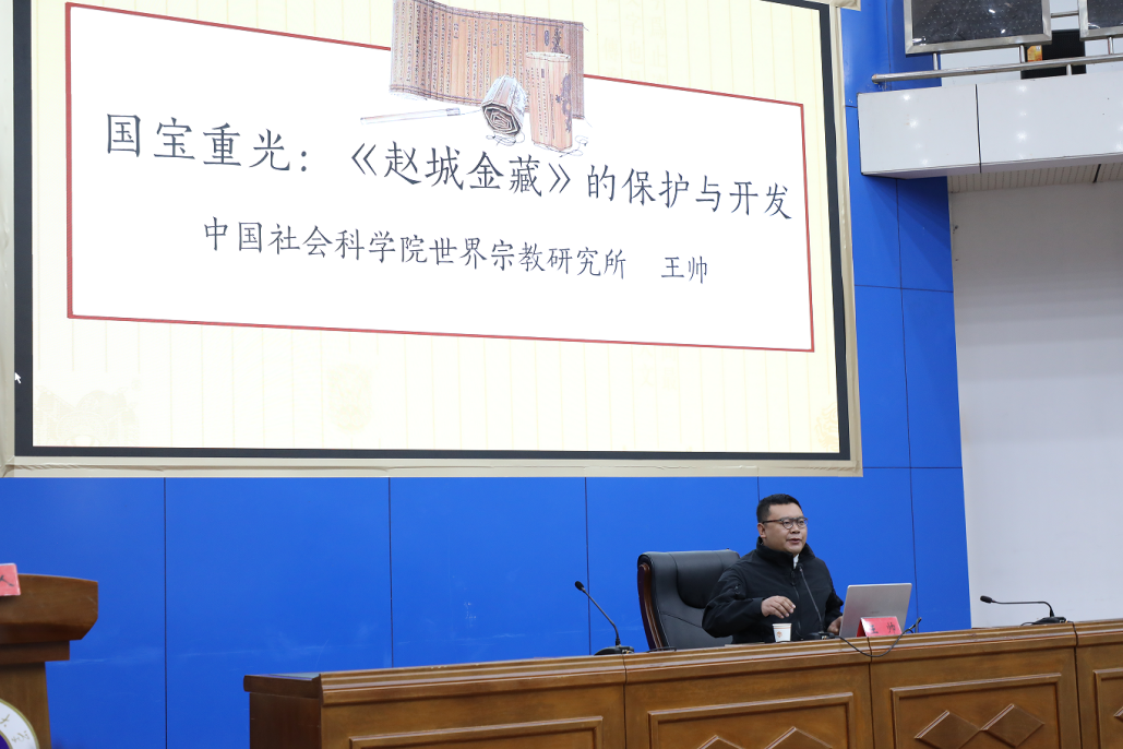 活动特邀中国社会科学院世界宗教研究所副研究员王帅做题为《国宝重光——<赵城金藏>的发现、保护与开发》的专题讲座,引领师生探寻国家图书馆“镇馆之宝”《赵城金藏》之传奇。