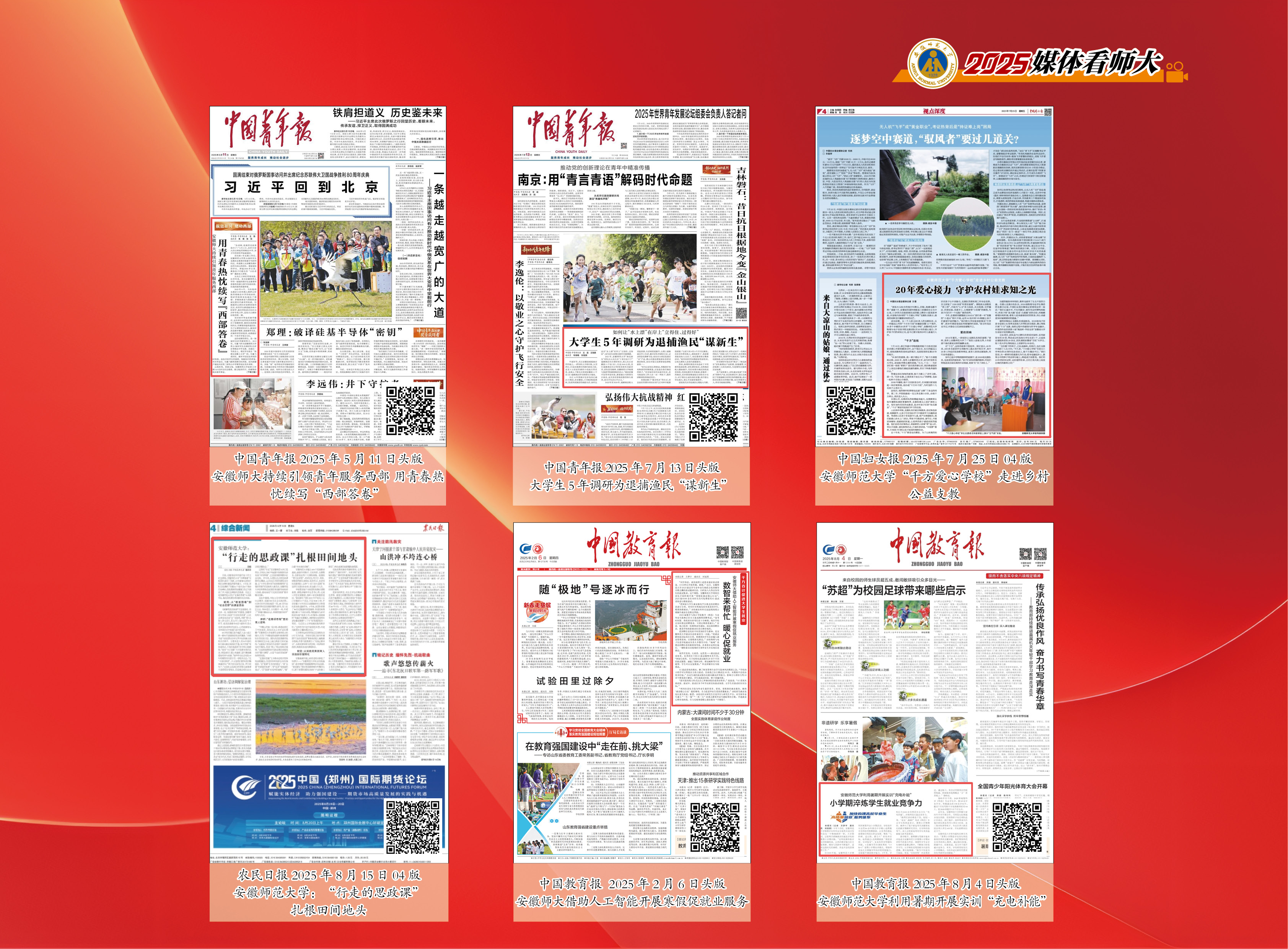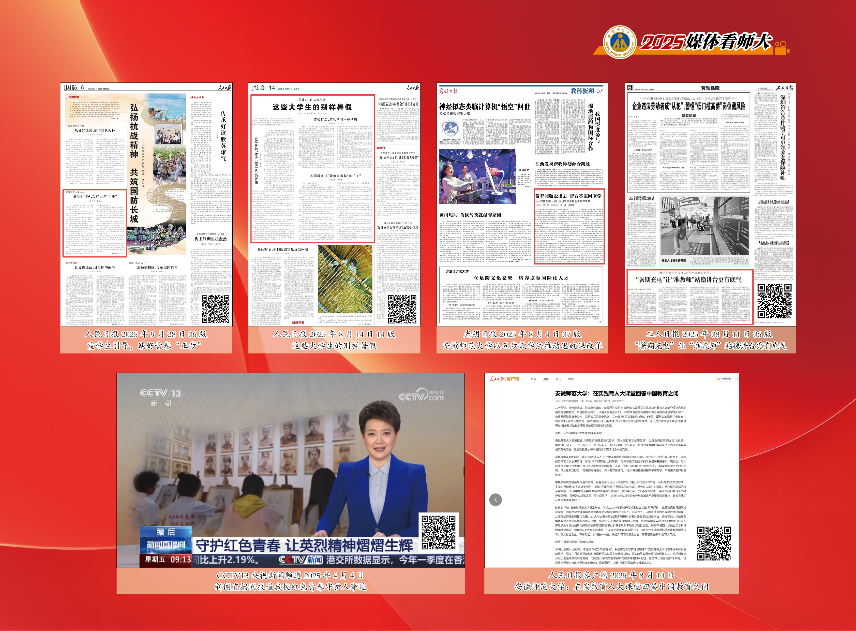 据统计,2025年我校获省级以上主流媒体报道920篇次,《人民日报》《光明日报》等国家级主流纸媒、央视和安徽日报、安徽新闻联播报道112篇次,其中整版报道2次,头版16次,头条7次,实现了关注热度与报道质量的双提升。这些报道的背后,是学校党委锐意改革的领航赋能,是学科、科研、育人、社会服务协同发展的实力积淀,是全校上下的凝心聚力、实干笃行,更是为全力争创“双一流”而源源不断注入的师大动能。