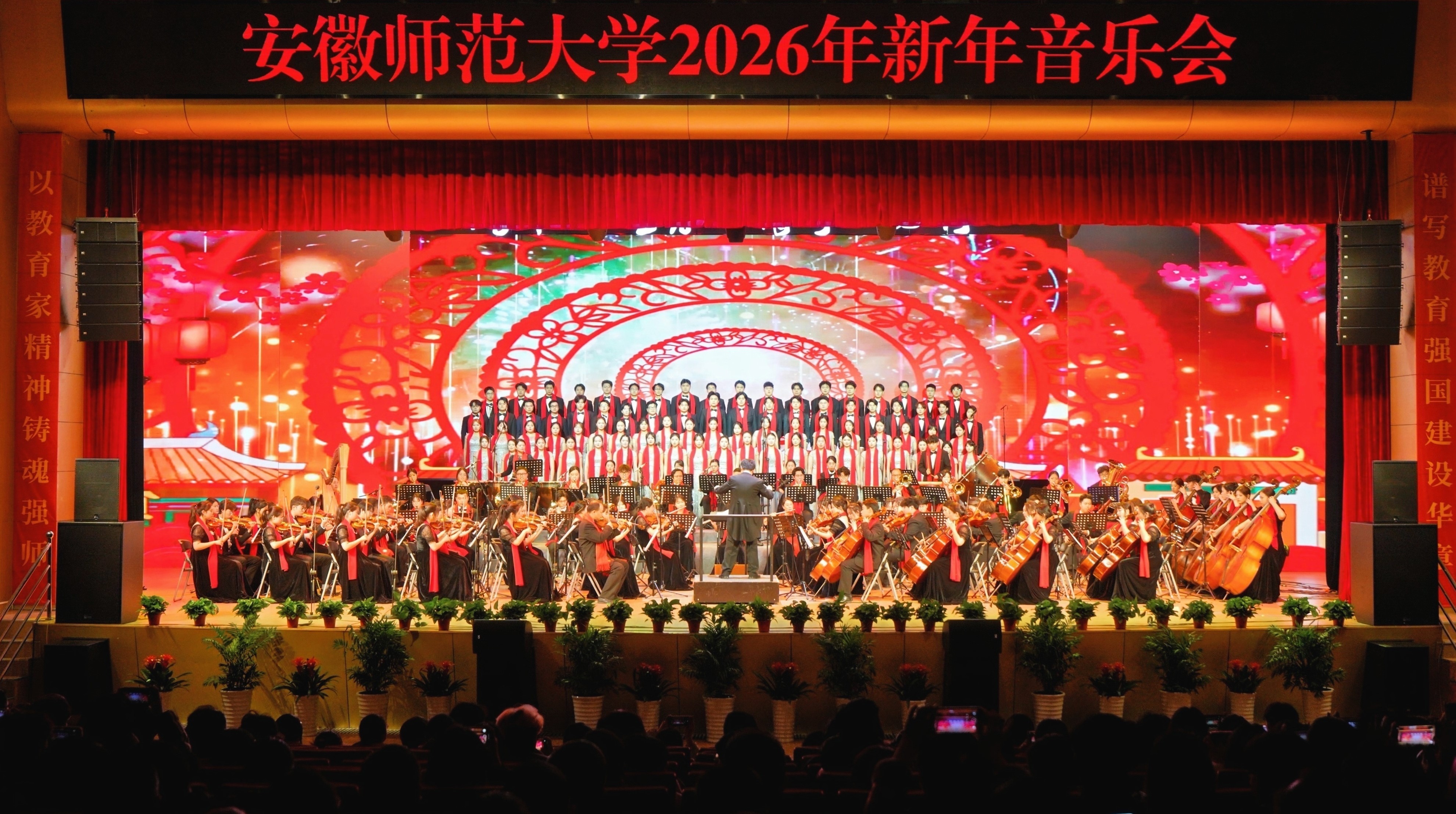 岁末迎新,艺韵满盈。12月30日晚,学校在花津校区大礼堂举办2026年新年音乐会。芜湖市机关单位、企业有关负责同志,全体在校校领导,各部门、各学院师生代表齐聚一堂,在管弦齐鸣与深情吟唱中,共赴一场融合经典与创新、饱含家国情怀的艺术盛宴。
