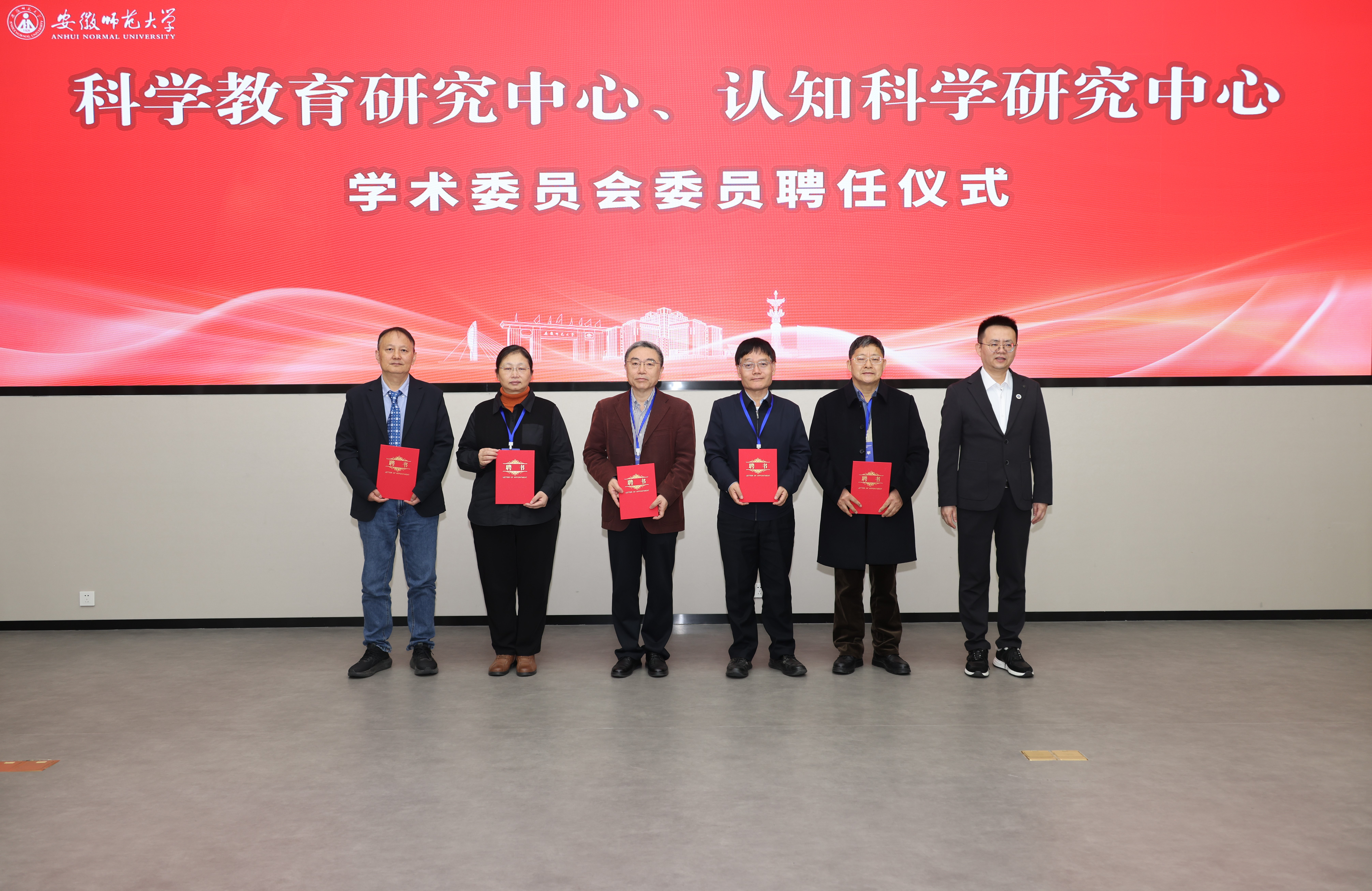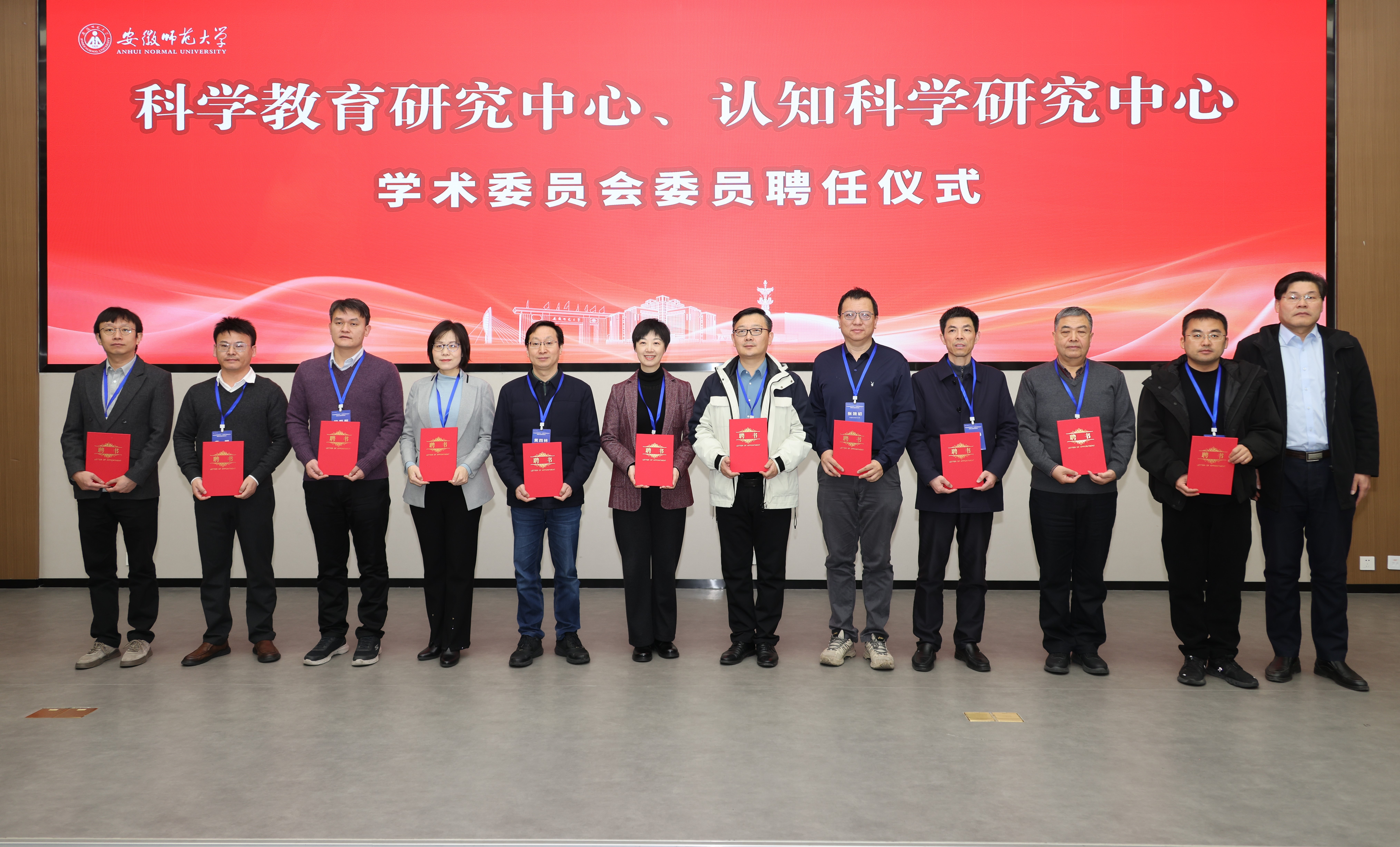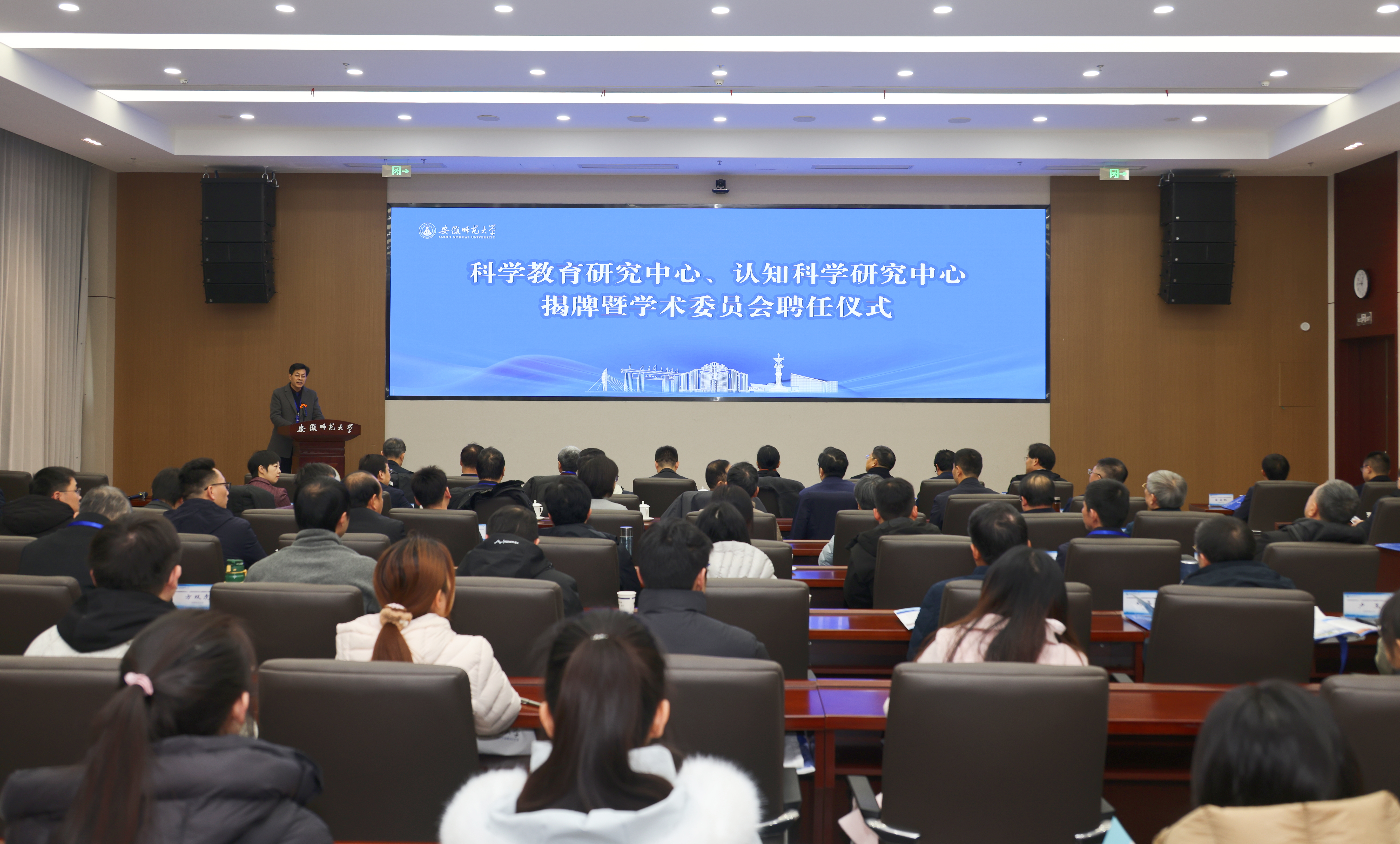 1月10日,学校在花津校区举行安徽师范大学科学教育研究中心、认知科学研究中心揭牌暨学术委员会聘任仪式。校党委副书记、校长熊宇杰,校党委常委、副校长高峰、桑青松、田兴友出席仪式。来自浙江大学、中国科学技术大学、南京大学、复旦大学、北京师范大学、华东师范大学、山东师范大学等国内相关领域的杰出专家组成的研究中心学术委员会全体委员,学校相关职能部门负责人、各师范专业所在学院主要负责人及师生代表参加仪式。仪式由桑青松主持。