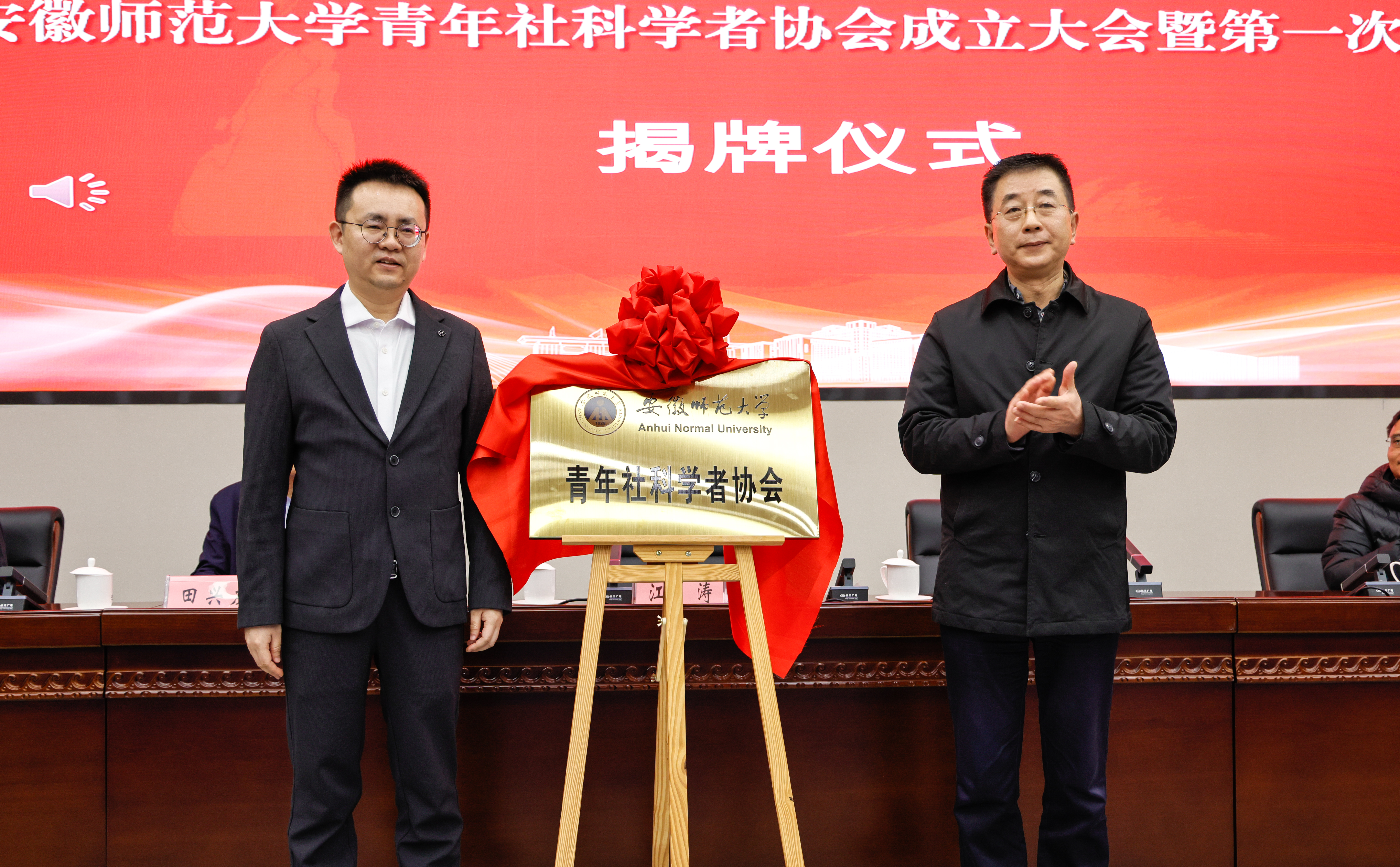 会上,曹刚宣读了安徽省社科界青年社科学者协会的贺信,江涛与熊宇杰共同为“安徽师范大学青年社科学者协会”揭牌。