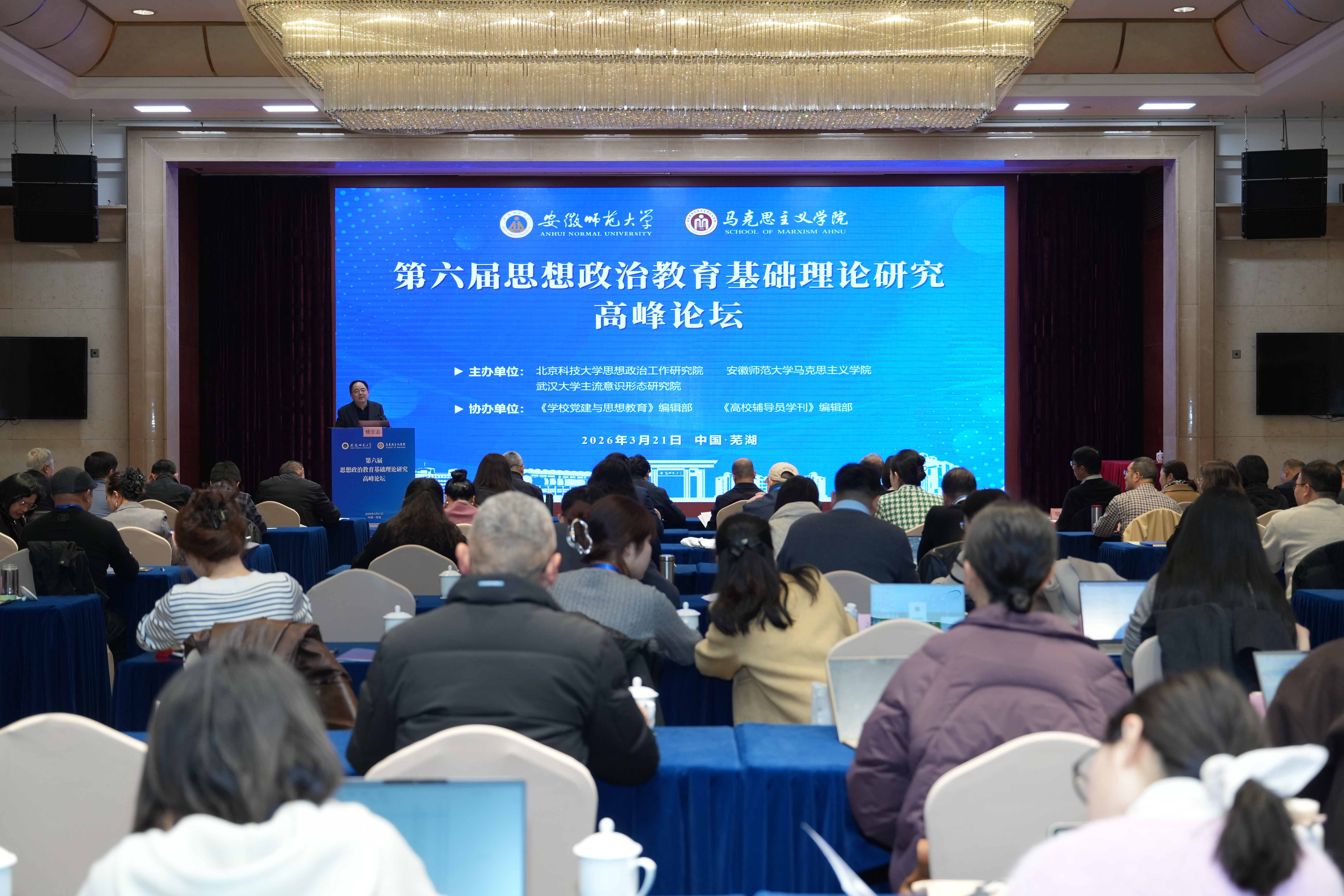 为深入学习贯彻党的二十届四中全会精神,进一步推进思想政治教育基础理论研究创新发展,近日,由北京科技大学思想政治工作研究院、安徽师范大学马克思主义学院、武汉大学主流意识形态研究院主办,《学校党建与思想教育》编辑部、《高校辅导员学刊》编辑部联合协办的“第六届思想政治教育基础理论研究高峰论坛”在安徽师范大学召开,来自北京科技大学、中国人民大学、浙江大学、武汉大学、东南大学、上海师范大学、上海交通大学、四川大学、中山大学、同济大学等全国40余所高校与研究机构的近百名专家学者参加了本次论坛。