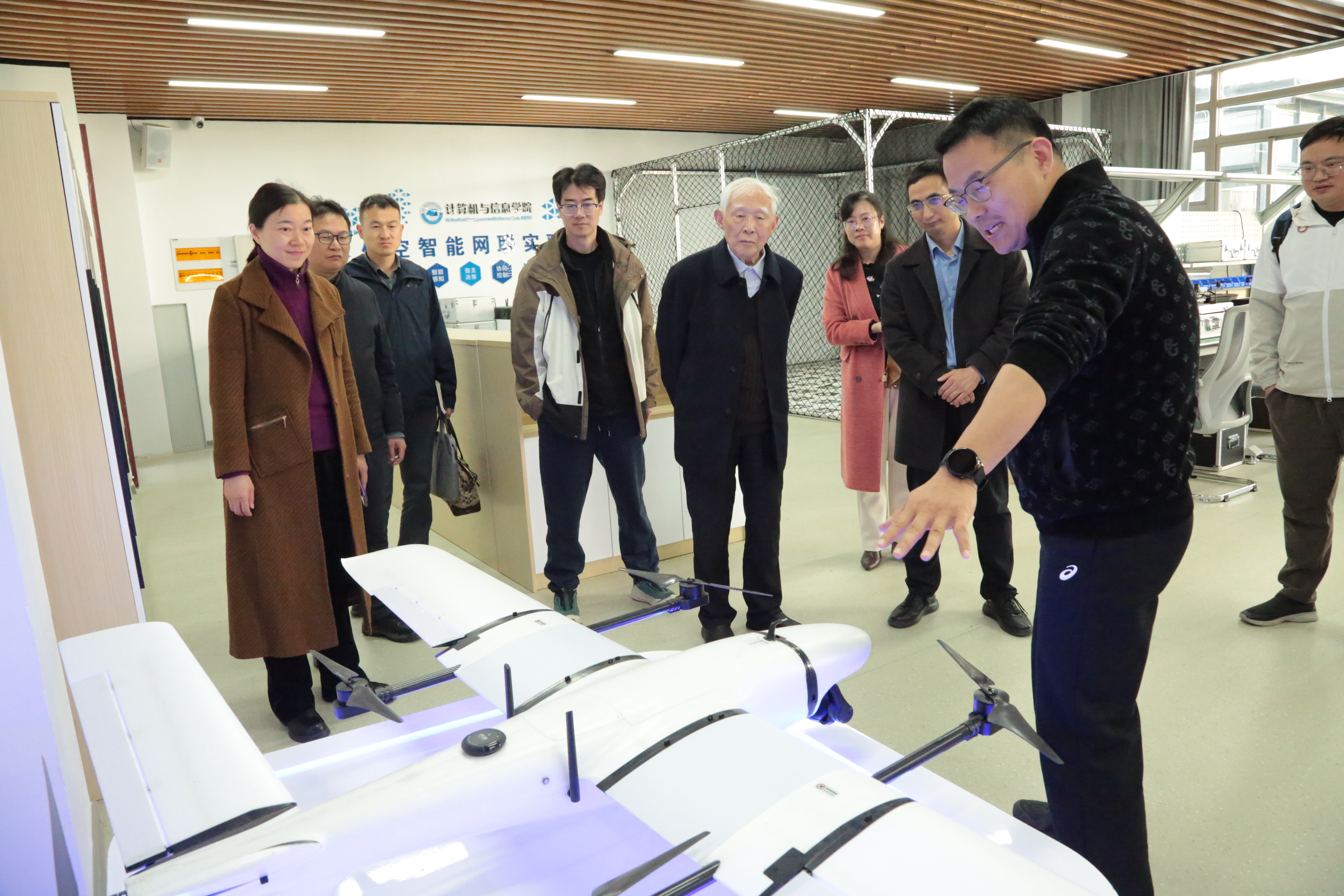 在南京邮电大学季一木教授及计信学院领导班子成员陪同下,陈国良院士实地考察了低空智联、智能网联汽车等实验室,详细了解实验室建设与科研成果转化情况。