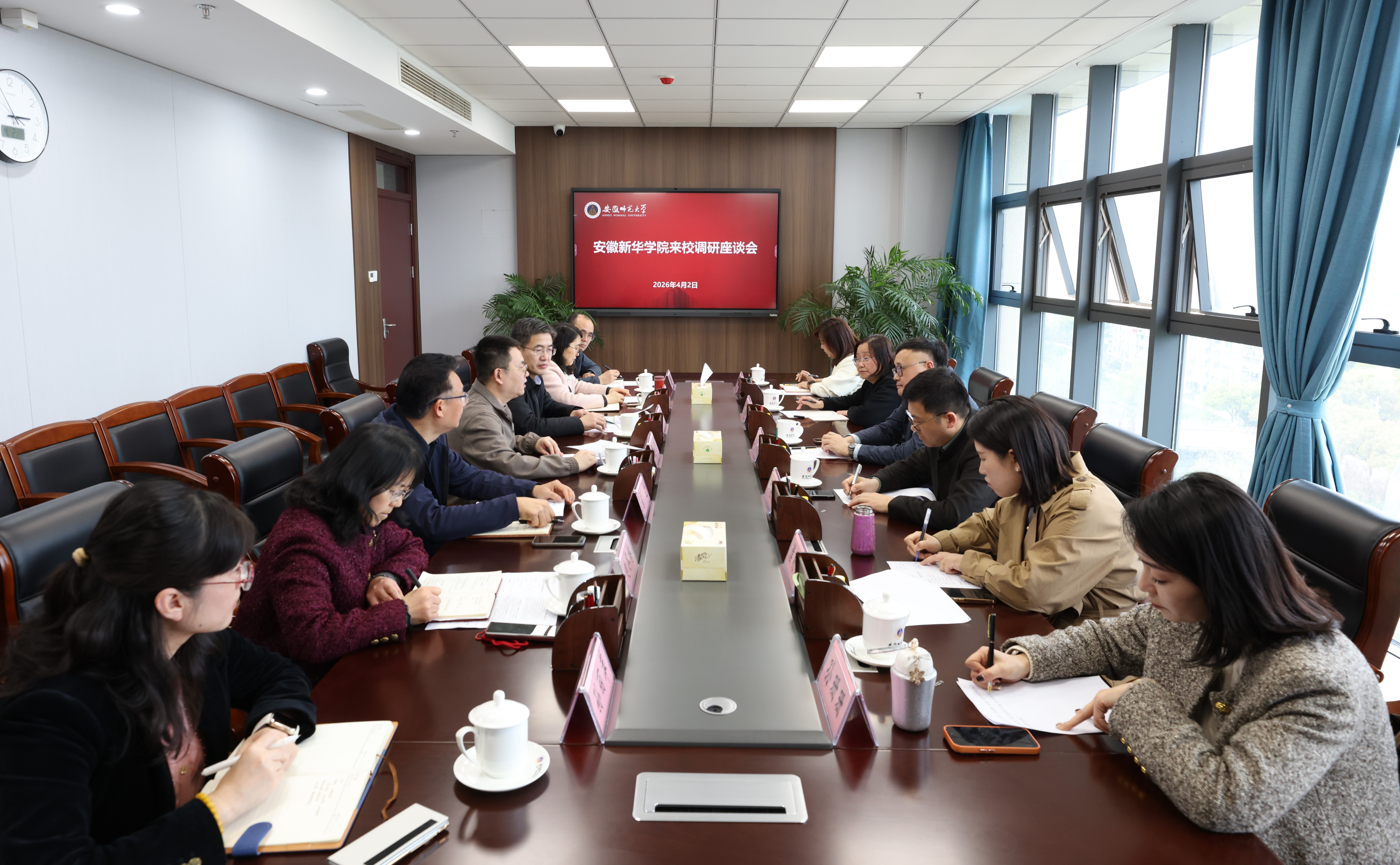 安徽新华学院副校长、党委委员王琦进,办公室、教务处、校友办、大数据与人工智能学院负责人,我校党委常委、办公室主任邵登辉,发规部、本科生院、学生处、校友办、计算机与信息学院(人工智能学院)负责人参加座谈交流。