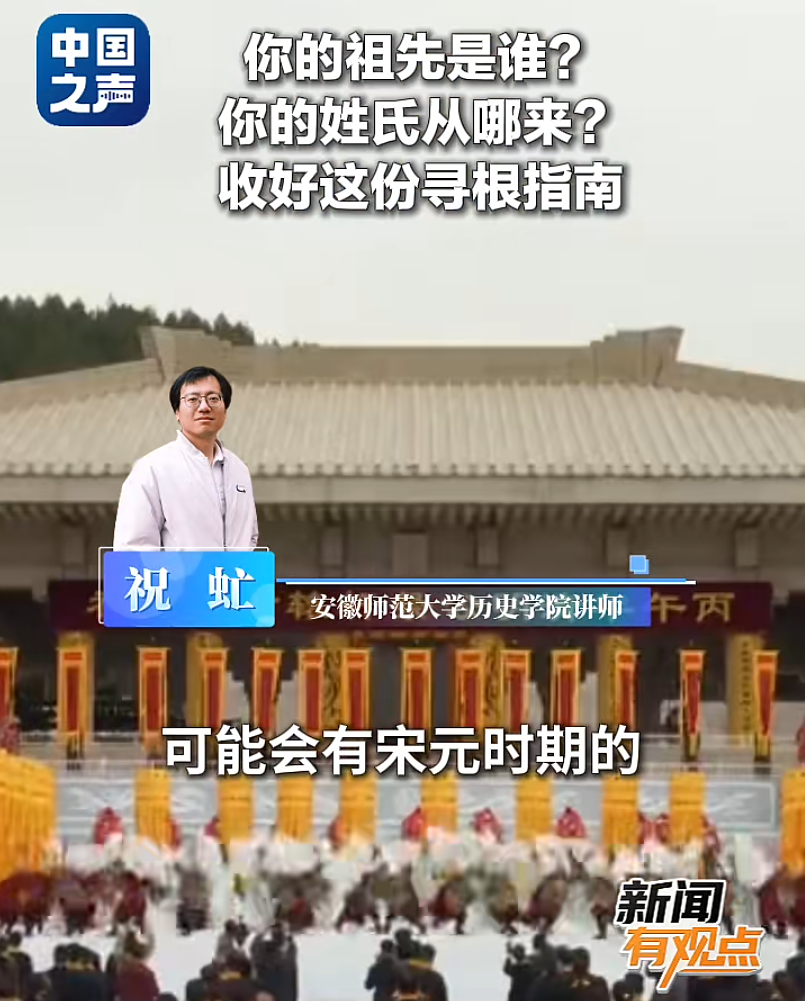 4月5日,中央广播电视总台中国之声推出清明特别节目《同姓同根》,历史学院青年教师祝虻受邀参与节目录制,与知名姓氏文化研究学者、姓氏谱牒专家张新斌研究员同台对话,共探“同姓同根”的文化内涵与时代价值。《同姓同根》节目聚焦广泛分布于华夏大地的王、张、李三大姓氏祖源地清明祭祖传统习俗活动,深入解读姓氏宗族背后所承载的厚重历史记忆、文化传承脉络,深刻展现了中华民族血脉相连、慎终追远的凝聚力量与文化认同。节目中,祝虻从历史社会学与历史地理学视角出发,系统解读了王、张、李等大姓氏在历史长河中的主要迁徙路径与当今的人口地理分布情况,深入分析了姓氏何以能发展成为中华姓氏中蔚为大观的主要群体以及其背后复杂的历史成因与社会动力,进一步探讨了姓氏文化在当代快节奏社会中,对于凝聚家族认同、延续文化根脉所具有的独特价值与传承意义,为观众呈现了姓氏文化背后的文明密码。