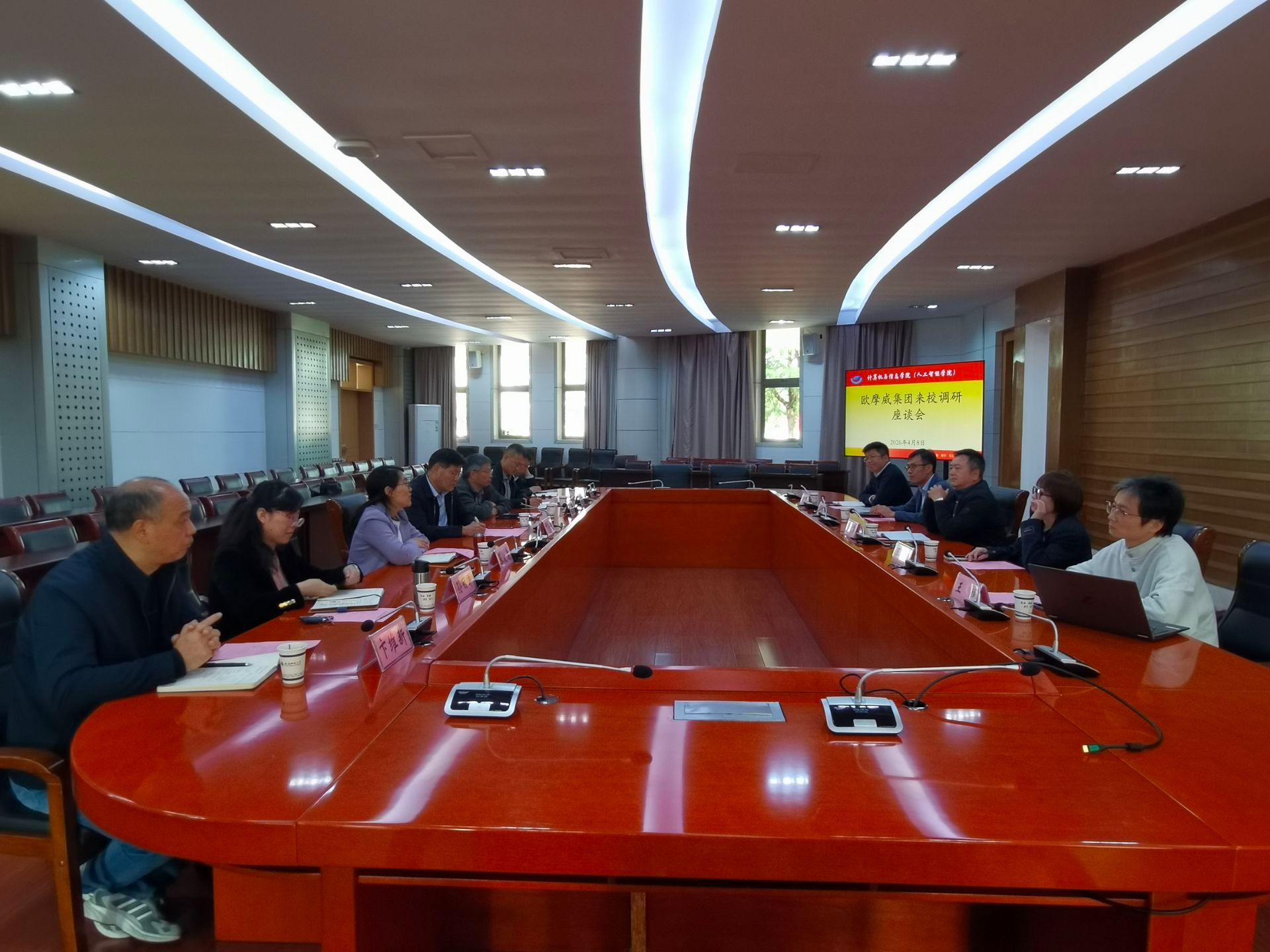 4月8日上午,欧摩威集团中国区副总裁樊永刚一行来校开展调研座谈,校党委常委、副校长田兴友主持座谈会,欧摩威集团相关部门负责人,学校科研部、发展规划部、计算机与信息学院(人工智能学院)有关同志参加座谈。