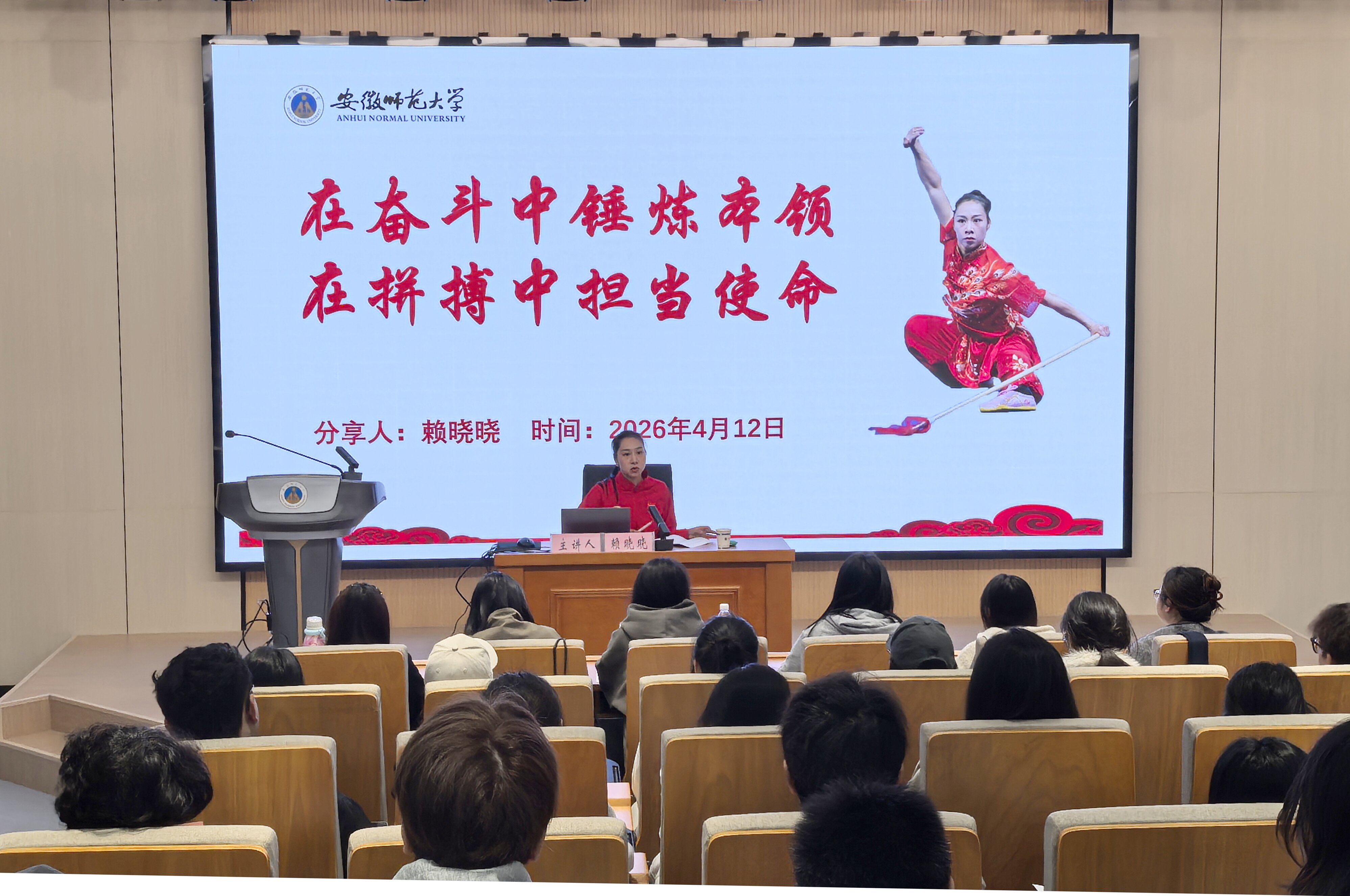 在优秀党员代表案例教学环节,国际世界运动协会运动员委员会副主席、第11届世界运动会女子长拳冠军、第19届亚运会武术女子剑术枪术全能冠军、体育学院教师党员赖晓晓,2026央视马年春晚合肥分会场参演人员、音乐学院学生党员张亚楠,第十九届“挑战杯”全国大学生课外学术科技作品竞赛“人工智能+”专项赛特等奖团队“肺腑之研”团队成员、物理与电子信息学院学生党员胡一飞从不同角度分享了作为共产党员在不同领域以实际行动为国争光、为校添彩、为民服务的生动事迹。在理论学习的基础上,培训班还组织全体学员前往白茆革命历史展陈馆开展红色党性教育实践,现场聆听了白茆镇文化站站长倪进升的现场微党课。