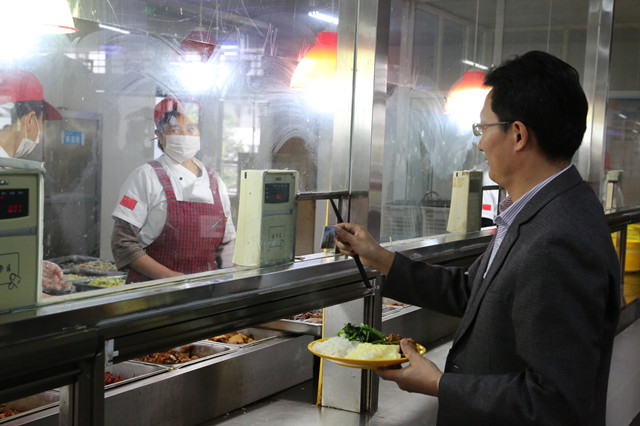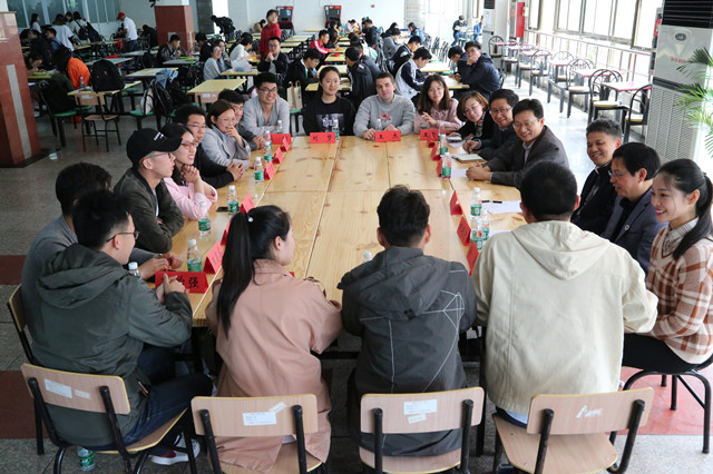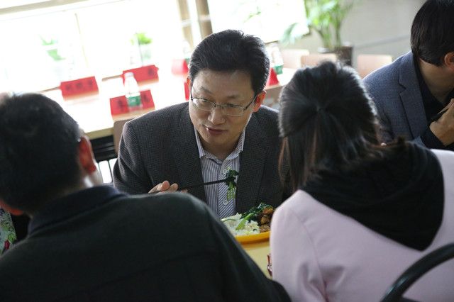 上午11时30分,张庆亮一行出现在学生食堂,与同学们一起排队打饭,立即引起了正在就餐同学的广泛关注。随即他来到同学们中间,与大家共进午餐并亲切交流,询问同学们学习和生活情况。在座学生代表纷纷积极发言,从日常专业学习到生活方方面面,从校园文化建设到后勤物业管理,对存在的一些问题,直陈己见,提出了诸多意见和建议。