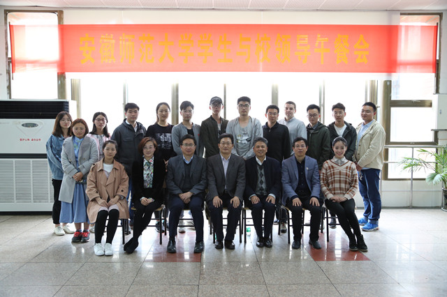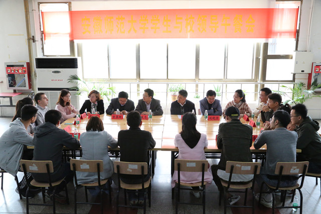 本网讯(文/学生校长助理 徐淼 图/宣传部 邾强) 粒粒米饭甜入怀,句句关怀暖生心。4月13日午间,我校第二期校领导午餐会在花津校区学生第二食堂二楼餐厅举行。校党委副书记、校长张庆亮,校党委常委、副校长陆林,学校办公室主任曾黎明、学生工作处处长刘晓宇、校团委书记梁燕与来自各学院的14名本科生、研究生和留学生代表参加了本期午餐会。
