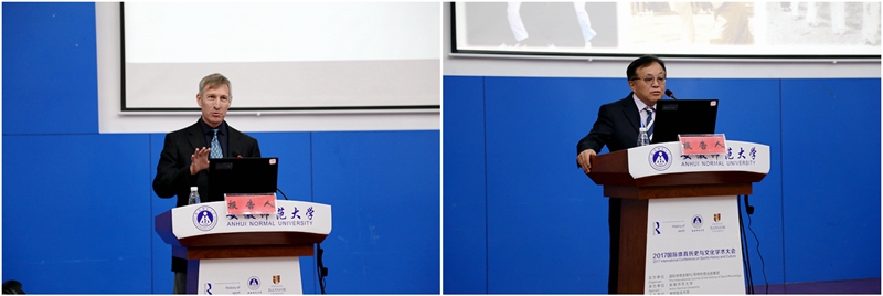 开幕式上,张庆亮校长向莅临我校的各位专家学者表示热烈的欢迎及感谢。他指出此次大会具有重要的理论与现实意义,必将进一步促进国际体育历史与文化的学术交流,推进亚洲地区民族传统体育发展,希望学校中青年体育工作者珍惜机会、虚心学习,不断提高我校体育学科的建设发展水平。Bangor大学校长John Hughes代表大会协办方致欢迎词,他认为此次会议是一次非常权威的学术盛会,他表示非常期待与来自不同群体的人们对话,交流对体育的认识和理解,并期待与我校在今后的体育科研与教学中有更进一步的合作。《国际体育史》期刊编辑主任Alejandra Leach-Nunez代表大会主办方致辞,她指出《国际体育史》期刊是体育史研究领域世界一流学术期刊,会后将从本次会议的录取稿件中选取优秀论文,在2018年的期刊上发表,让芜湖会议的成果与全世界分享。致辞后,Bangor大学与安徽师范大学进行了两校合作办学协议签署仪式,Bangor大学John Hughes教授受邀担任安徽师范大学客座教授。
