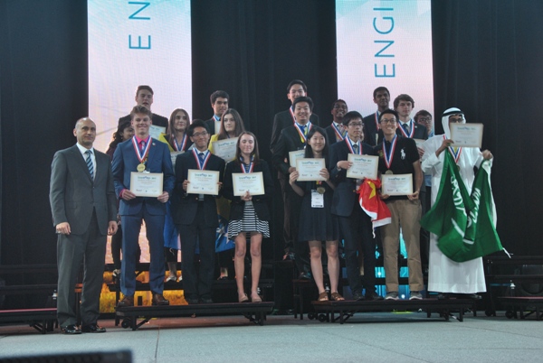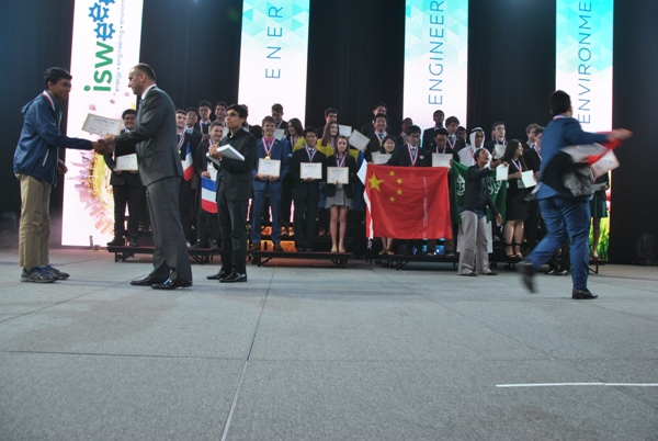 本网讯(附中  严景东)  美国休斯敦当地时间57日下午15:00,“2017年国际可持续世界能源、工程、环境项目奥林匹克竞赛I-SWEEEP)”颁奖仪式隆重举行,来自安徽师范大学附属中学的天才选手彭爽不负众望,获得金牌。这已经是他第4次获得国际机器人奥林匹克竞赛项目的顶级桂冠。