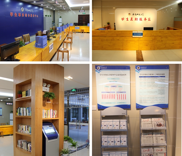 据悉,学校坚持把大学生思想政治教育与解决实际问题相结合,高度重视大学生事务中心建设,作为2016年重点推进的十件实事列入学校的“双十”工程。项目建设得到校领导的关心支持,顾家山书记和王伦校长亲自过问,李琳琦副书记全程指导,学生处会同保卫、财务、资产、后勤、团委、信息中心等单位,抓紧建设,全力推进。中心建成后,将为同学们提供柜台式集约化服务。目前,共有教务处、学生工作处、保卫处、研究生院、后勤管理处、团委、信息管理中心、图书馆等8个部门、14个服务项目入驻中心,其中包括6个常驻柜台,3个轮值柜台和5个自助服务项目。服务内容涵盖教务教学服务、本科生学工事务、学生户籍服务、研究生事务、后勤服务、共青团事务、校园网络服务、图书自助查询、汽车票自购服务等。
