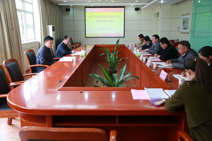 汇报会上,学校领导从三个方面详细汇报了我校对述责述廉反馈问题的整改落实情况:一是高度重视,把整改落实作为重要任务抓紧抓好。着力抓学习讨论,提高思想认识;抓工作谋划,认真制定方案;抓责任落实,层层传导压力;抓建章立制,强化长效机制。二是扎实推进,确保整改落实任务清零销号。三是持之以恒,切实巩固专项整改成果。切实强化“两个责任”,切实加强作风建设,不断巩固和扩大整改成效。经过此次专项集中整改,述职述廉评议反馈问题得到了全面整治,取得了良好的成效。学校将按照省纪委工作要求,坚持常抓不懈,从严从实,切实把评议反馈问题专项整改成果转化为学校“管党治党严紧硬”的长效机制,把党风廉政建设和全面从严治党不断引向深入。