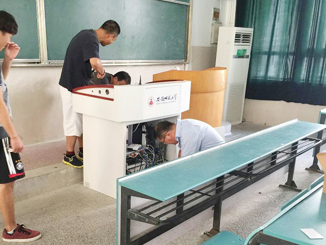 暑假伊始,后勤管理处即组织人员对所有公共教室课桌椅进行维修,共维修、焊接课桌椅近千张(只);利用假期对教室电灯电扇进行全面清洁和维修,共清洁教室电扇2000余台,维修200余台,更换71台。对两个校区220间公共多媒体教室教学设备进行全面检修,更换损坏的配件、清洗投影机灯泡、清理多媒体机柜、维修摄像头线路等。同时做好教室粉笔、黑板擦、话筒电池等教学用品配置工作。