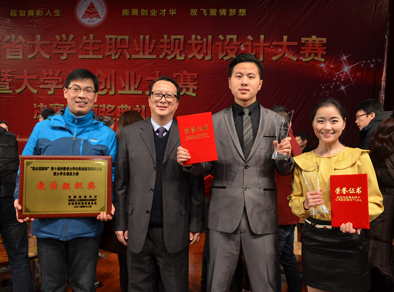 本网讯(学生工作处 郭志春)1225-27日,由省教育厅、省人社厅、团省委主办的第十届安徽省大学生职业规划设计暨创业大赛总决赛在合肥落幕。我校文学院刘毅同学和新传学院陈博群创业团队分别以就业组和创业组第一名的优异成绩荣获大赛金奖,学校连续第十年荣获“最佳组织奖”。