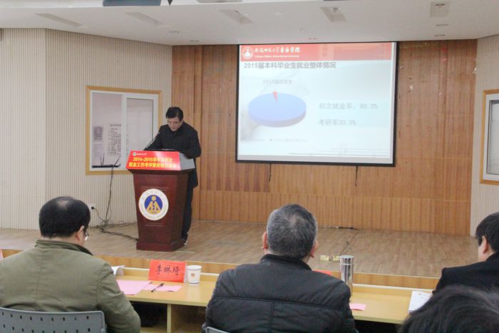 上午,学校在花津校区就业报告厅召开2015学年本科生就业工作考评暨经验交流会,研究部署2016年就业创业工作。校党委副书记李琳琦、校本科生就业工作考评领导组成员、各学院党政主要负责人和专业负责人代表出席会议并担任评委,各学院党委副书记、2016届全体专兼职辅导员参加了会议。