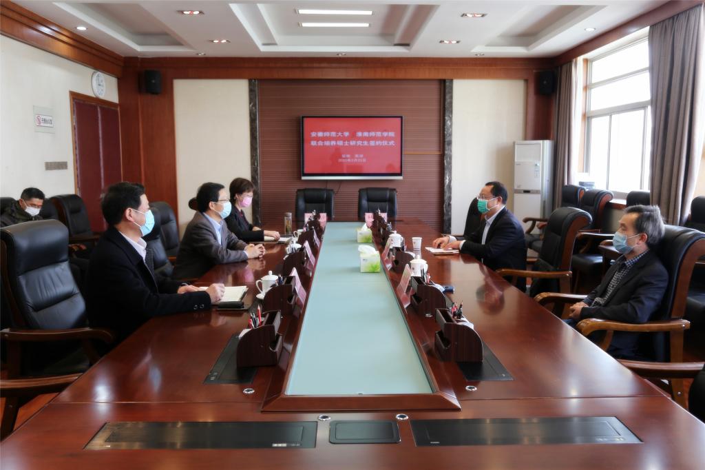 李琳琦感谢安徽师范大学长期以来对淮南师范学院办学的支持。他表示,淮南师范学院将制定相关办法对联合培养研究生予以优惠政策,把联合培养工作做好、做实,切实保证研究生培养质量。