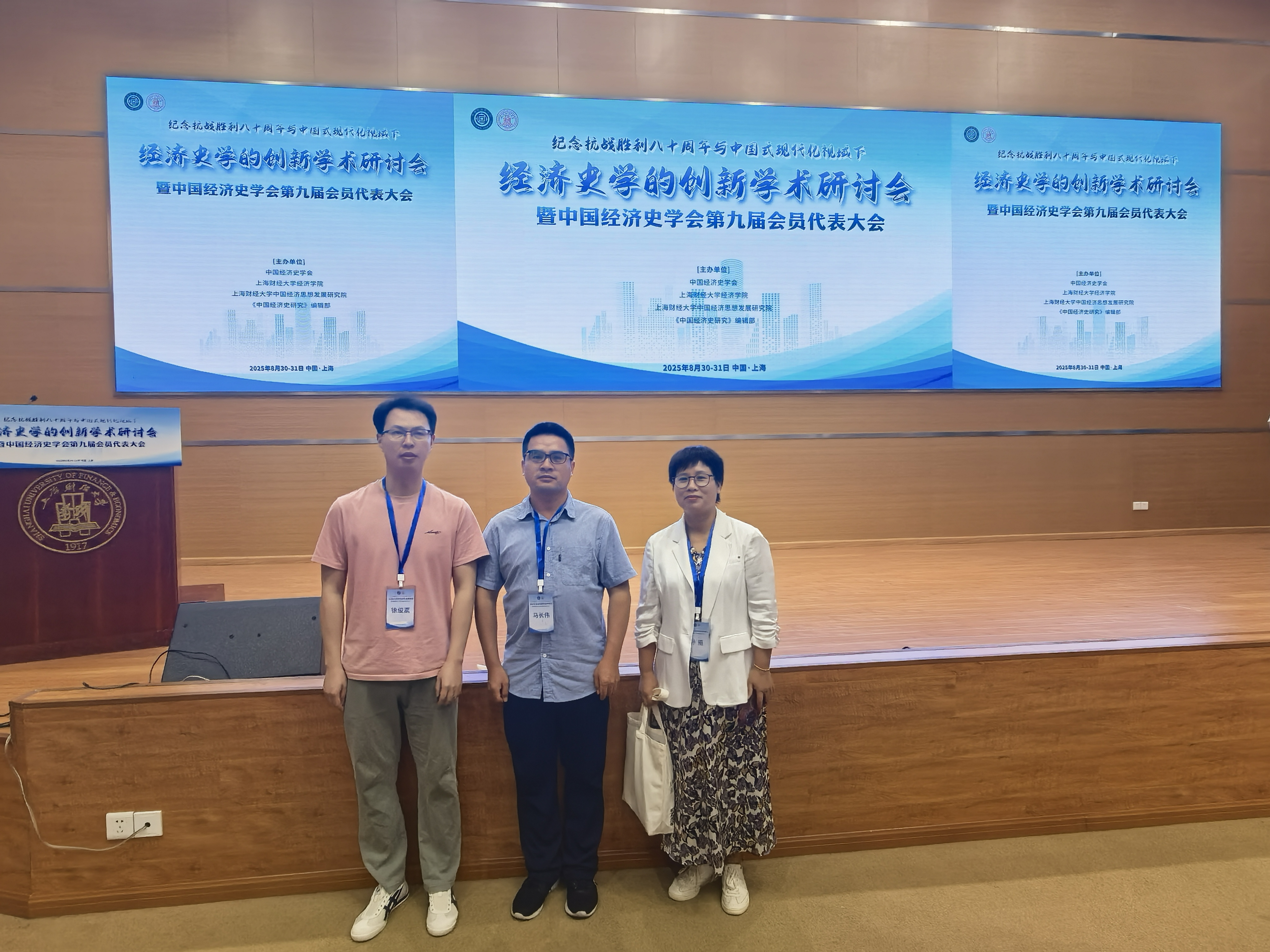 2025年8月29日至31日,“纪念抗战胜利80周年与中国式现代化视域下经济史学的创新”学术研讨会暨中国经济史学会第九届会员代表大会在上海财经大学经济学院隆重召开。经管学院经济史团队马长伟教授、徐俊嵩副教授、孙丽博士受邀参会。团队老师与来自清华大学、北京大学、中国社会科学院等全国一百余所高校及科研机构的专家学者齐聚一堂,围绕经济史学前沿议题展开深入交流。马长伟教授当选为中国经济史学会第九届理事会理事。