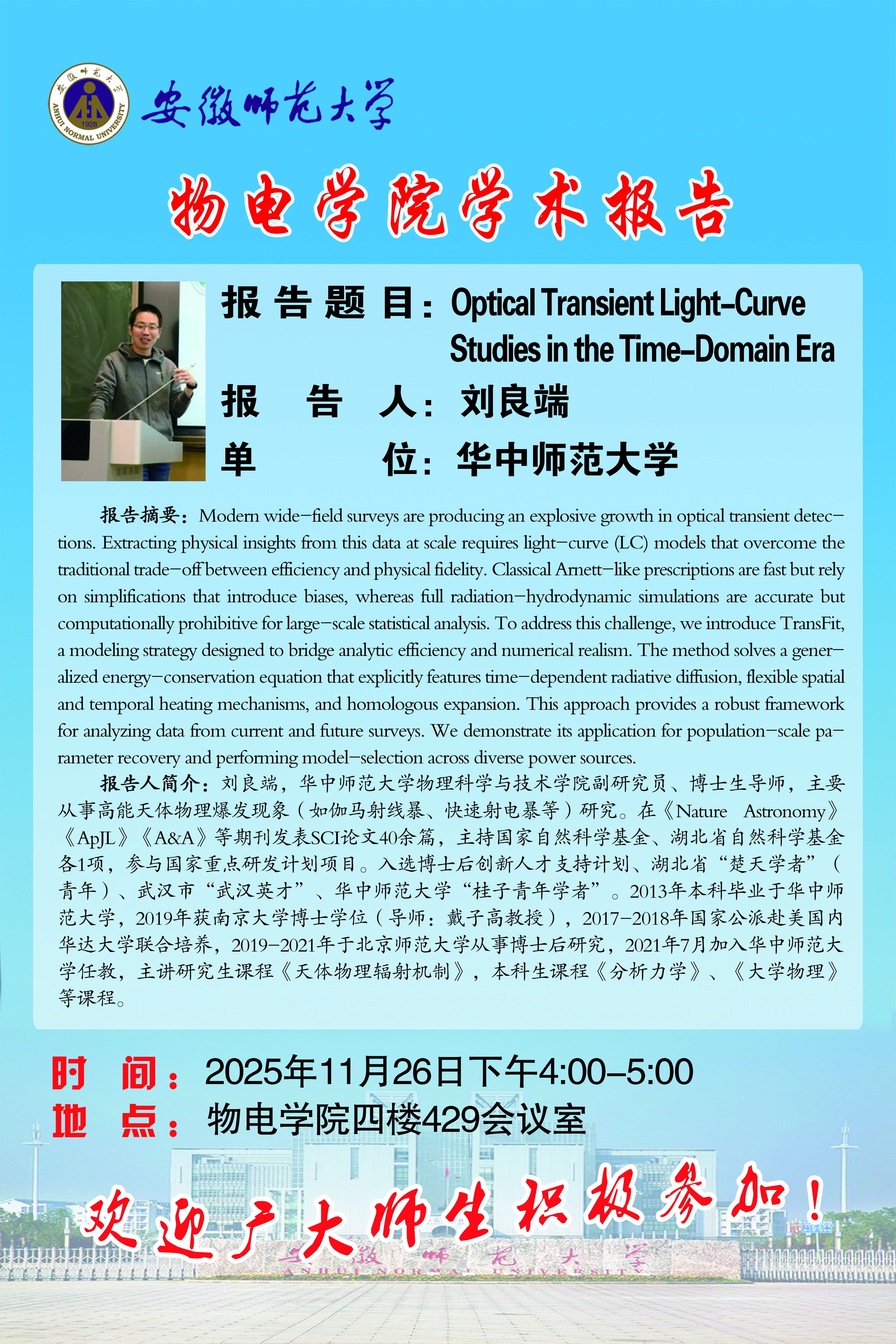 【学术预告】物电讲坛2025年第50期:Optical Transient Light-Curve Studies in the Time-Domain Era