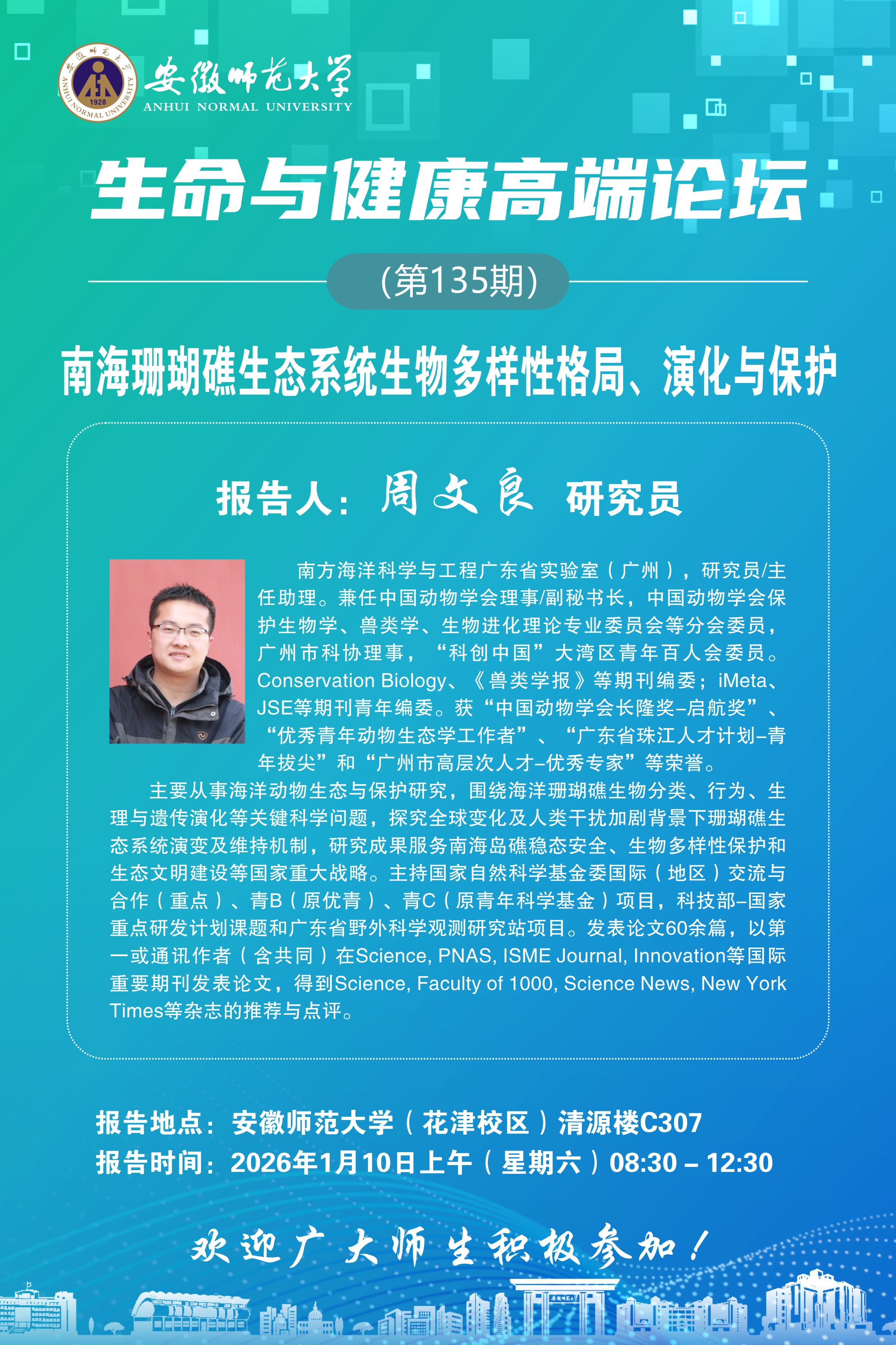 【学术预告】生命与健康高端论坛第135讲:南海珊瑚礁生态系统生物多样性格局、演化与保护