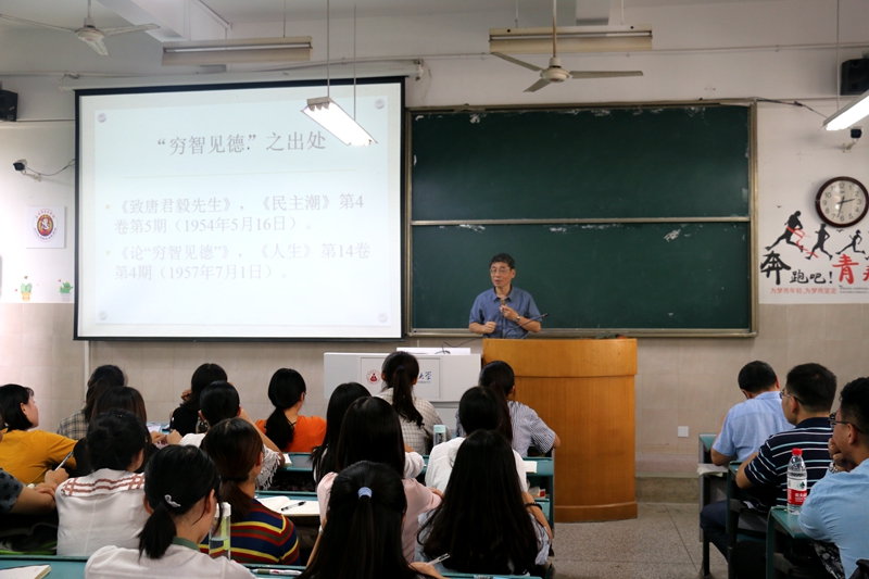 本网讯(文/刘鑫楠 图/窦国娟)为开拓学院师生的文化视野,提升校园学术氛围,9月10日下午,“中央研究院”中国文哲研究所研究员暨台湾大学“国家发展研究所”合聘教授李明辉应马克思主义学院邀请,在行知楼2020204教室做了“‘穷智见德’儒家与康德的共同思想研究”的学术讲座。马克思主义学院彭启福教授主持讲座,学院部分老师和思想政治教育专业2017级本科生以及研究生聆听了整场讲座。