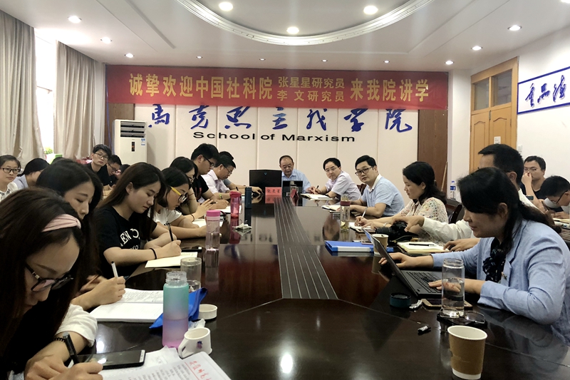 本网讯(马克思主义学院)6月2日下午,中国社会科学院当代中国研究所副所长张星星教授在学院四楼第一会议室作了“全面落实新时代党的建设总要求”的学术讲座。讲座由马克思主义学院副院长姚宏志教授主持,马院部分老师和学生参与聆听。