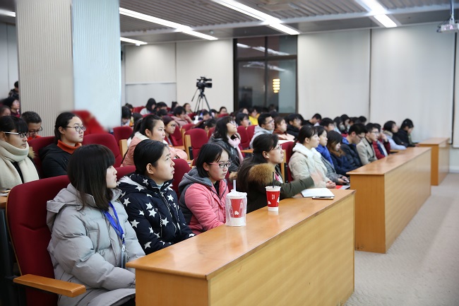 宣宾首先对影片动感、快节奏的现代生活,时间似乎已经凝固,推拉升降回归现实的三部分拍摄层级作了简要介绍。随之,她应用美国心理学家塞利格曼的电击狗实验原理,重点阐释了从习得性无助到习得性乐观观点。她指出,影片揭示了人的生命的耐力,尤其是当一个人孤立无援时,如何保持心理健康,在克服无数天然屏障的同时,战胜自己内心无奈无助、渴望放弃的意识。影片的主人公Chuck正是由于具有这种对时间、朋友、自我、爱情从未放弃的信念和与生俱来的乐观幽默精神,才坚持到最后。我们应学着把自己的眼光放得开阔一点,看到事件背后的真正的决定因素,学会从自我的荒岛逃脱,学会在绝望中等待希望。