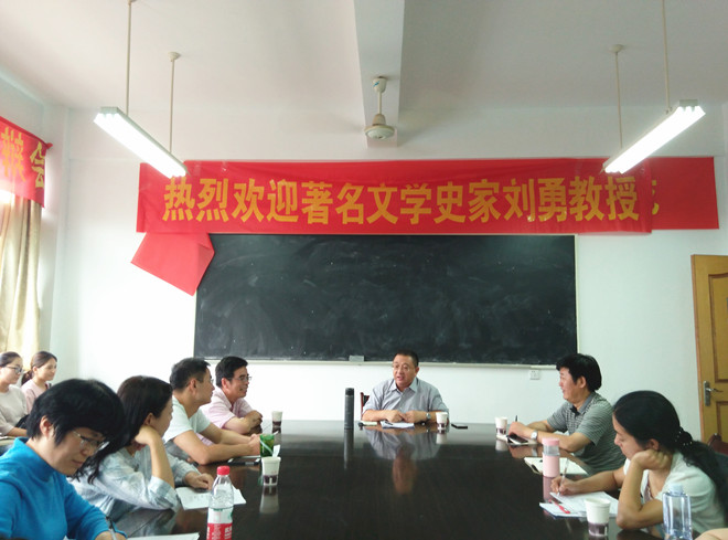本网讯(文学院 汪旭)9月11日上午,中国现代文学研究会常务副会长、《中国现代文学研究丛刊》副主编、北京师范大学博士生导师刘勇教授,应邀为文学院师生做一场精彩的专题讲座。文学院中国现当代文学专业方维保、杨四平、黄静、张华、郭传梅、杨惠以及中国现当代文学专业博士生、硕士生参加并聆听了讲座。讲座由中国现当代文学专业点负责人、博士生导师方维保教授主持。