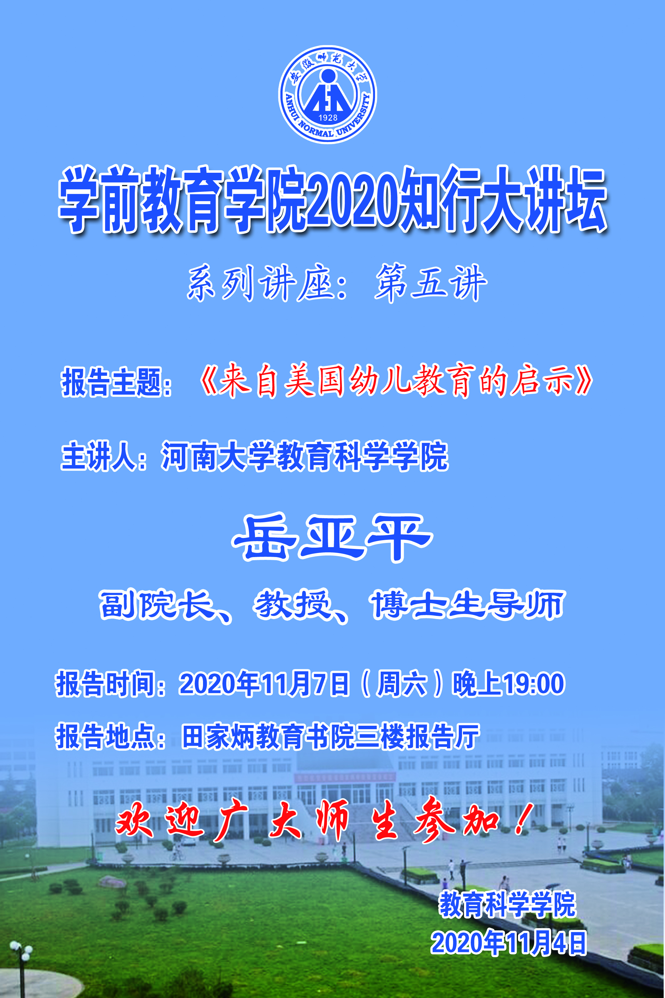 【学术预告】教育科学学院“知行大讲坛”第五讲:来自美国幼儿教育的启示