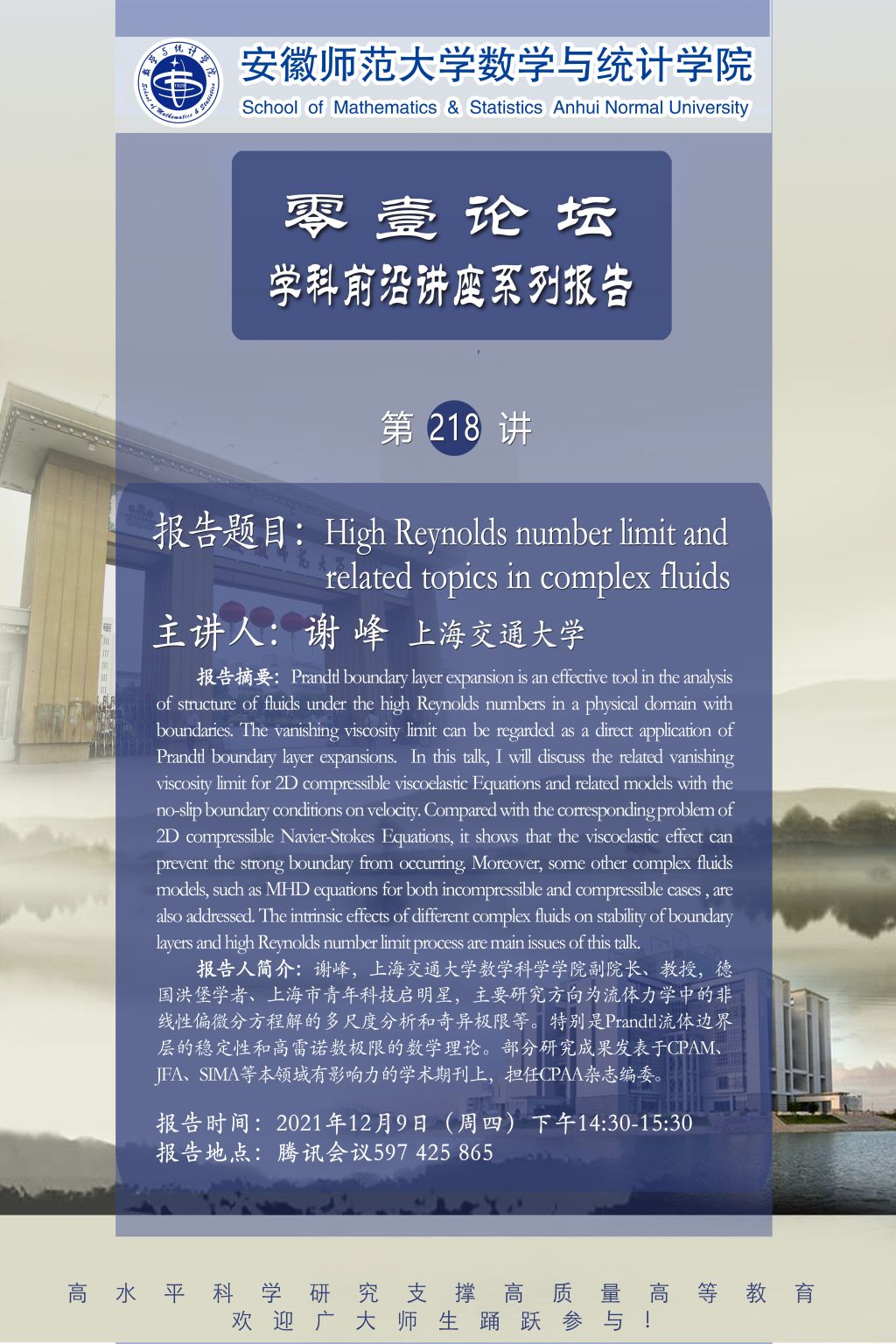 【学术预告】零壹论坛第218讲:High Reynolds number limit and related topics in complex fluids
