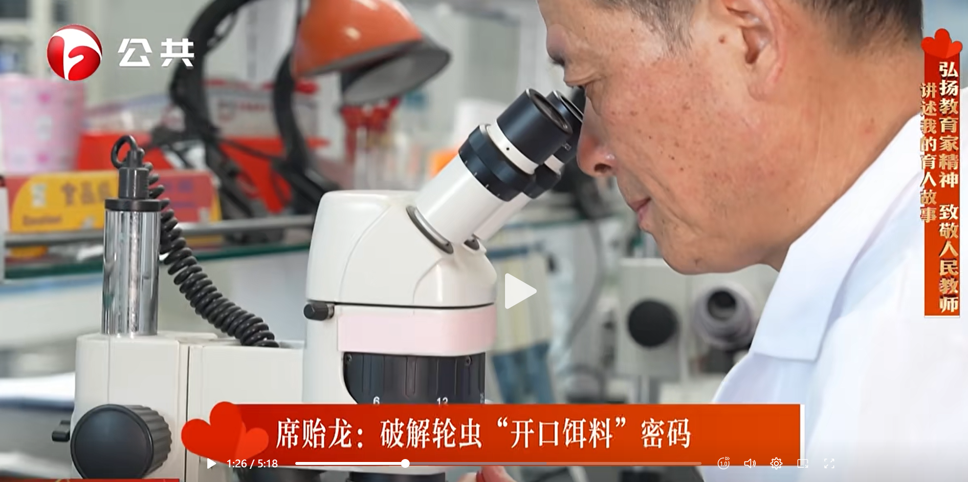 【安徽公共频道】:弘扬教育家精神 致敬人民教师——讲述我的育人故事“心与心愿”教育公益活动之席贻龙:破解轮虫“开口饵料”密码