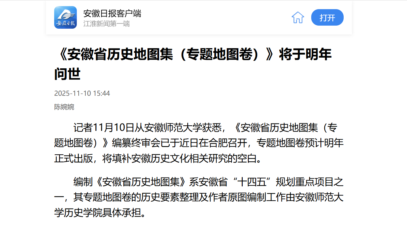 【安徽日报】《安徽省历史地图集(专题地图卷)》将于明年问世
