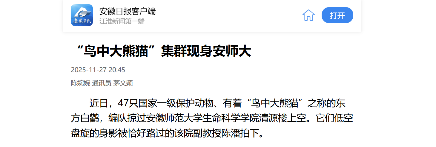 【安徽日报客户端】“鸟中大熊猫”集群现身安师大