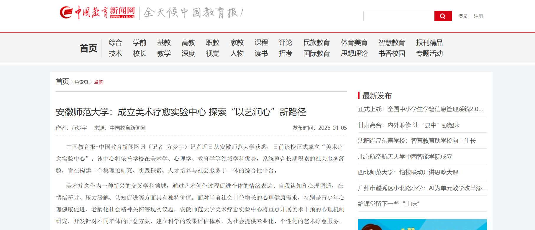 【中国教育新闻网】安徽师范大学:成立美术疗愈实验中心 探索“以艺润心”新路径