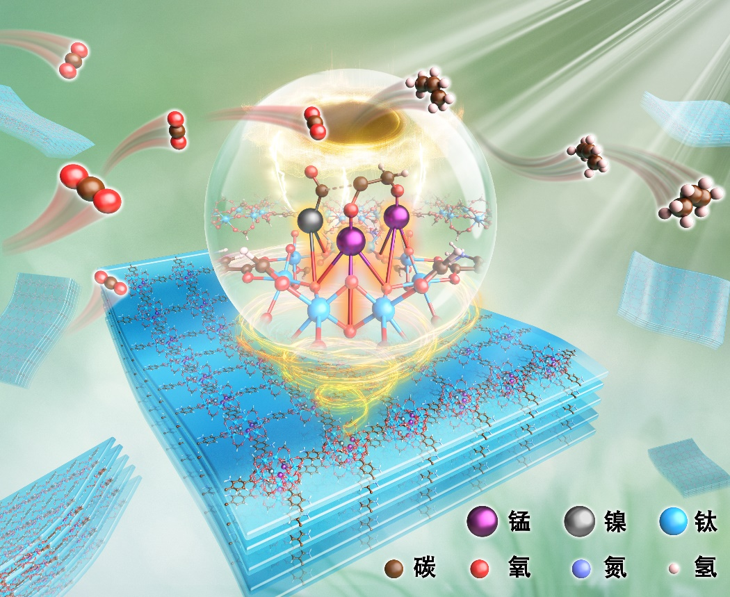 镍单原子和相邻锰双原子协同促进光催化二氧化碳还原为丙烷。安徽师范大学供图