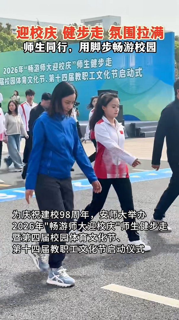 原报道阅读链接:【芜湖生活频道】4月10日,为庆祝建校98周年,安师大举办2026年"畅游师大迎校庆"师生健步走暨第四届校园体育文化节、第十四届教职工文化节启动仪式,师生同行,共赴这场青春与热爱的盛会!