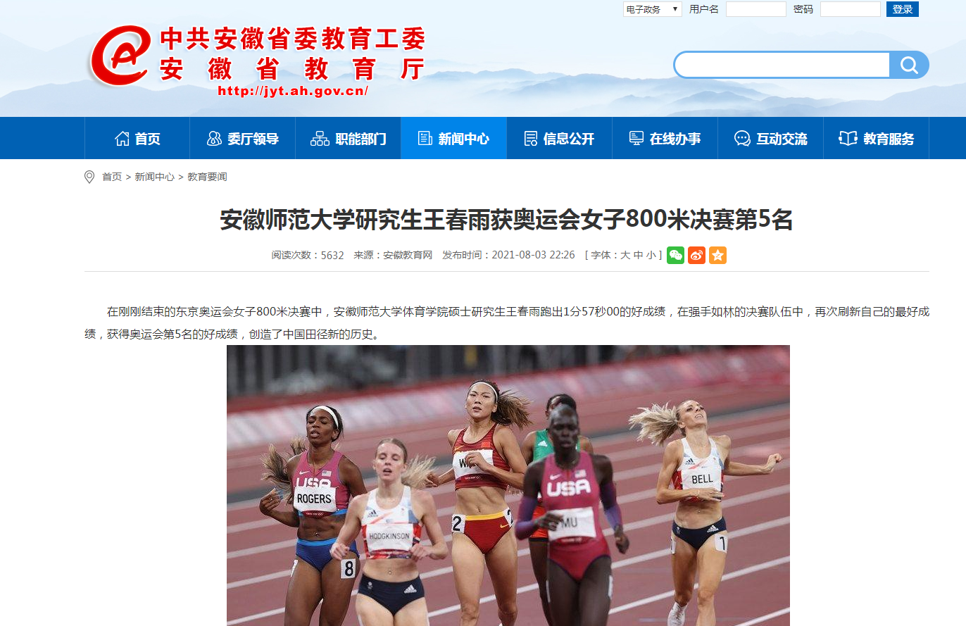 【安徽教育网】安徽师范大学研究生王春雨获奥运会女子800米决赛第5名