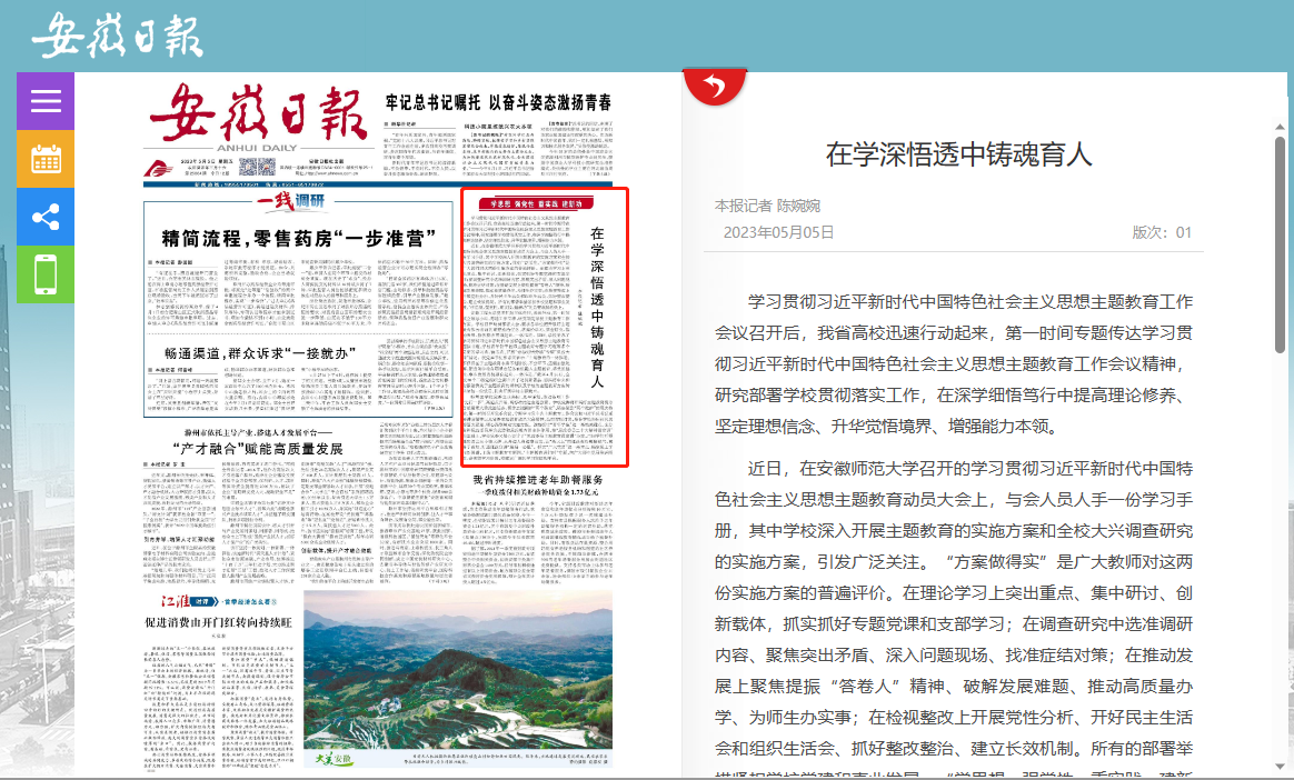 原报道阅读链接:【安徽日报】https://szb.ahnews.com.cn/ahrb/layout/202305/05/node_01.html#c971945