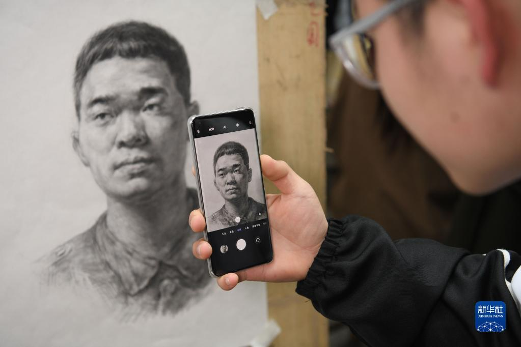自2021年11月起,安徽师范大学美术学院师生组建志愿者团队开展“为烈士画像”系列公益活动。大学生志愿者通过查阅烈士资料、听取烈士后代描述等方式,用手中的画笔还原烈士面貌。