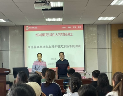 9月29日,学院邀请四川大学徐泽水教授就“经济管理类研究生科学研究方法”进行专题讲座,院长张廷龙教授到场聆听和指导。徐泽水教授针对数字时代下基于个性化表达的概率偏好决策理论与应用,进行了详细介绍和讲解,同学们纷纷表示受益匪浅。