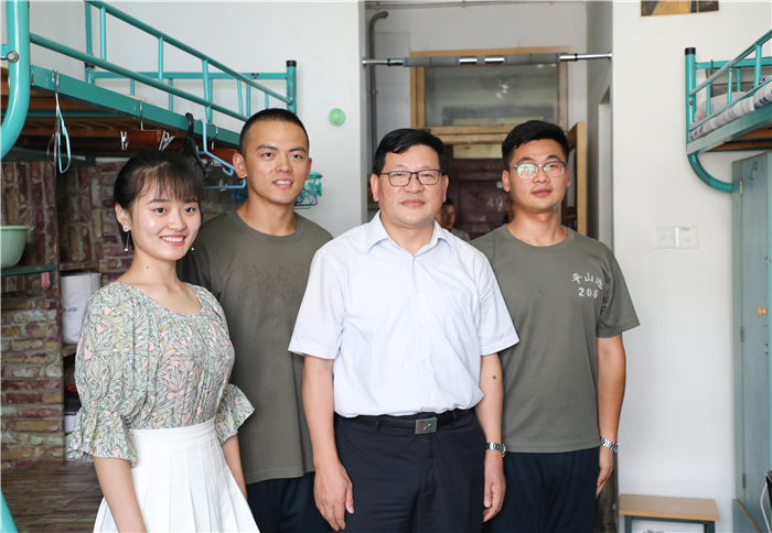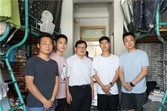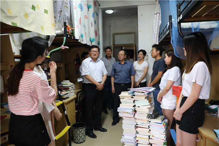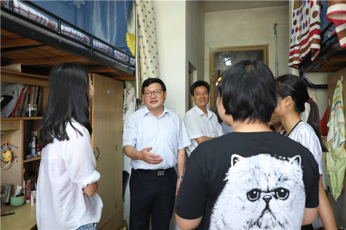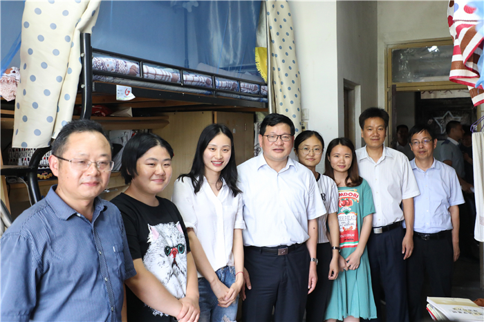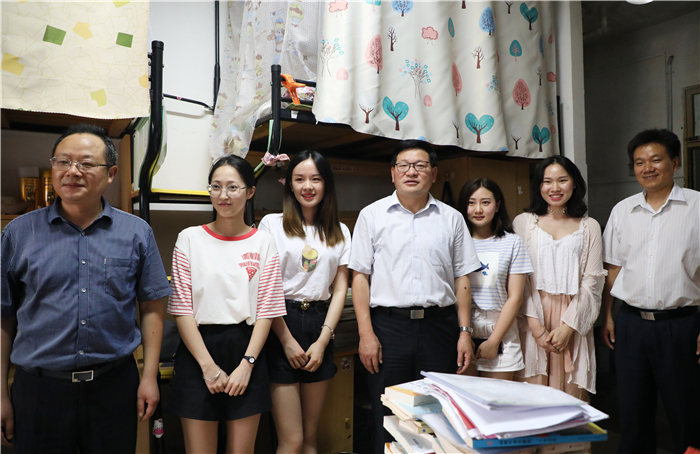 (文/马星宇 图/王玉洁)6月25日下午,校党委书记顾家山和校党委常委、副校长毕明福在学生工作处处长刘晓宇、后勤集团总经理叶丹的陪同下来到我院2018届毕业生所在的6栋和18栋宿舍楼看望即将离校的本科毕业生,详细了解学生毕业后的去向,认真听取学生对学校办学、管理的意见和建议,与学生们深情话别并合影留念。学院在家党政领导班子成员以及毕业班辅导员一同参加。