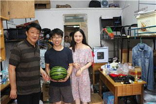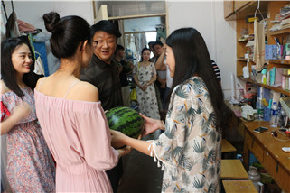 随后学院领导与毕业班学生一同给宿舍6号楼宿管阿姨送去了一份西瓜,表达了四年来对学院学生无微不至的照顾的感恩之心与即将离校的不舍之情。