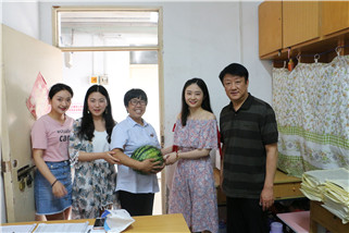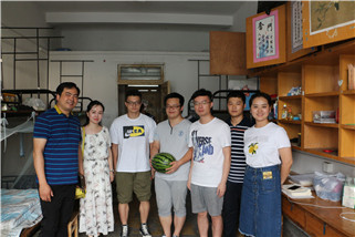 本网讯(音乐学院 文/徐梦颖 图/时飞虎)2018年6月25日下午,音乐学院党委副书记奚泰来、声乐教工党支部(18年校优秀基层党支部)党员、全体辅导员一同来到音乐学院2018届毕业生学宿舍,给每一位毕业生送去解暑的西瓜,带去一份安慰,带去一份关怀,让毕业班的同学们在炎热的夏天感受到一份清凉以及离校前的一份温暖。
