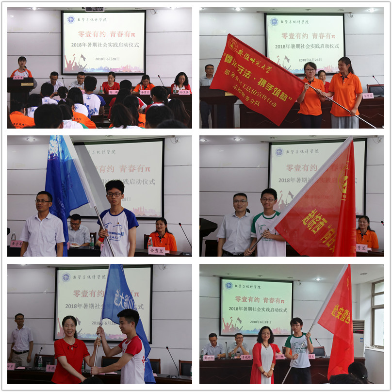 据悉,数统学院高度重视暑期社会实践活动的组织与开展,早在3月即开始筹备工作,多次组织专题会议。采用学生自主,老师指导引导模式,对组建的实践团队先后进行两轮答辩,即第一轮所有团队必须经历的立项答辩和第二轮遴选重点团队的立项答辩。学院领导、专业负责人、指导教师全程参与。“零壹有约,青春有π”。2018年的暑期,学院共组建团队20支,其中本科生19支,研究生1支;近300名志愿者将奔赴安徽、新疆、江苏、浙江等多个省份的基层、边疆、企业和社区中去,用数统学子的激情和信心续写青春华章。
