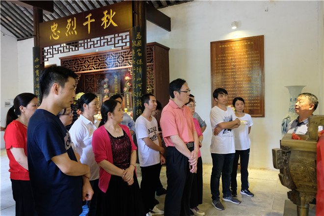 6月24日,活动第四站来到野寨中学,大家在野寨中学副校长朱太平的陪同下,瞻仰了景忠园。景忠园以抗日阵亡将士公墓为中心修建,国民革命军第48军176师(原十九路军)985位为国捐躯的抗日英烈长眠于此。一支军队,一座陵园,一段故事,一腔热血,抗战英烈的爱国主义热情任时光流逝,终不褪色,给我们上了一堂生动的爱国主义课。