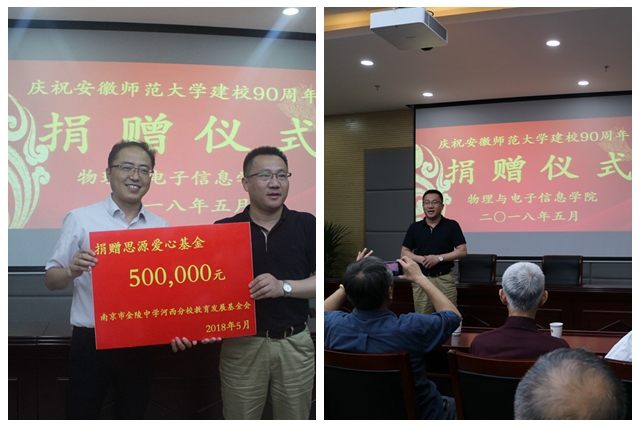 五月的细雨为安徽师范大学90周年的生日更添几分朦胧的诗情画意,校友们重返母校,共抒捐资助学之深情,共谋学院发展之大计。据悉,物电学院在建校90周年之际,开展了应用型学科发展论坛及座谈会、基础物理教育发展论坛及座谈会、校友资源共享座谈会、院士开讲了等系列活动。校友们捐赠仪器设备500余万元、奖助学金壹百多万元。