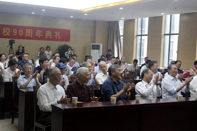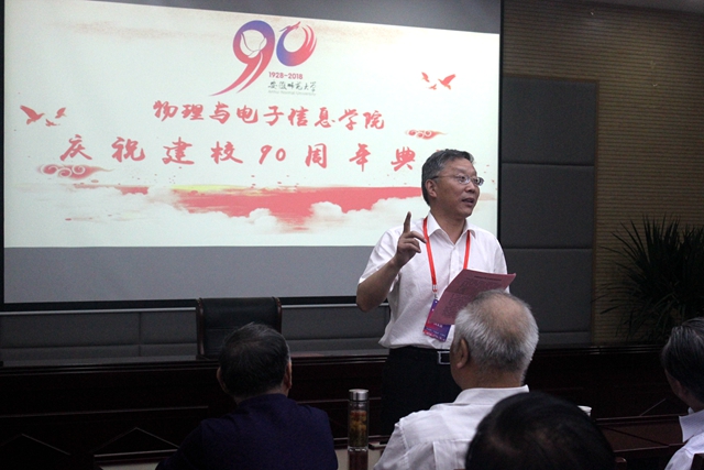 学院老教师代表严祖同教授激情昂扬的讲话感动了现场的所有人。严祖同老先生说:“我们的校友都非常优秀,有院士、博导、商界精英、大学校长、特级教师,我为你们感到骄傲!我最感动的是长期坚持在农村、在基层的中学老师们,我为你们自豪!”。严祖同先生提到,校友们的成功离不开母校母院的关心和培养,更离不开大家自己的艰苦奋斗。他希望,每一位物电人在自己的岗位上努力拼搏,为社会、为国家做出更大的贡献。