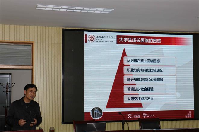 随后,院党委副书记戴和圣发表讲话并应邀为学员带来第一次专题学习。戴书记从大学生成长的新常态、找准“好学生”的成长坐标和做有情怀的“新青年”三个方面做了深刻的阐述。他指出大学生成长环境的新常态和面临的困惑,点明大学的成长要有想法、阅历、知识和行动,希望学生能否充分发挥“四自”功能。戴书记从横向和纵向两个维度对学生的四年大学生活进行了指导。他强调“好学生”的标准应是与时俱进的,且存在共性,鼓励学生们勇担时代重任,为实现强国目标贡献自己的力量。最后,戴书记从团学骨干的定位和成长思路入手,从三个承诺、四种能力、四种商力、四个追求、四个一流、四种模范等方面详细阐述对团学骨干的要求和期许,希望同学们成为新时代有情怀的新青年。戴书记的讲座有深度,更有温度,对团学骨干的成长和发展做出指导,学员们表示受益良多。